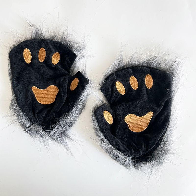 Furry Costume Half-Face Fox Mask with Fox Tail and Paws Gloves Fluffy Cosplay Costume