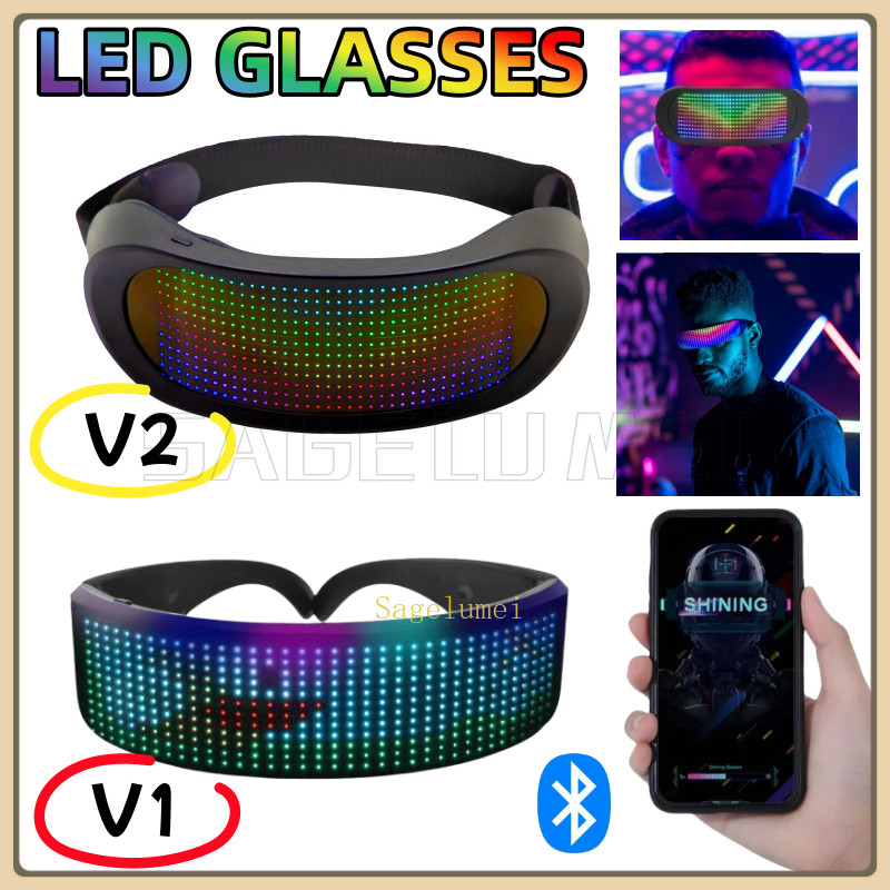 Futuristic V1 V2 Bluetooth DIY Led Glasses Programmable Luminous Shining Glasses Electronic Visor Glasses Prop for Halloween Bar Dynamic Full Color