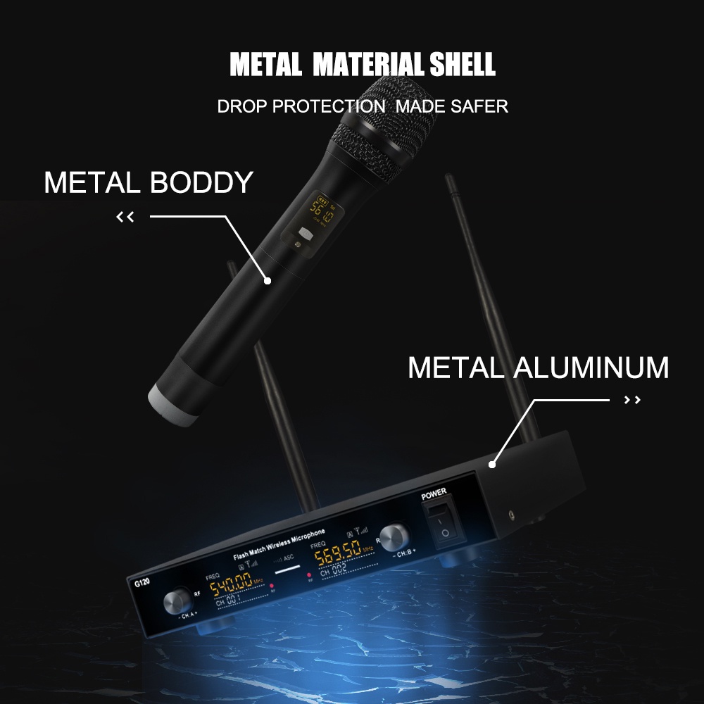 G-Mark G120 UHF Wireless Microphone System Dual Handheld Mic Complete Set for Outdoor Performance