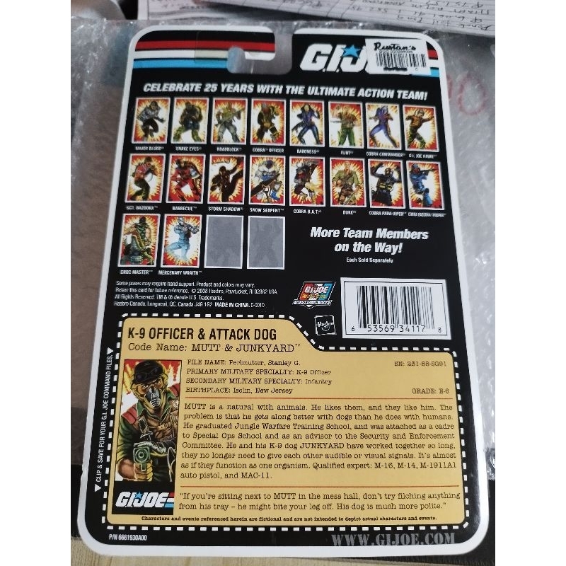 G.I. Joe MUTT AND JUNKYARD 25th Anniversary Brand New Sealed GI JOE Mint On Card