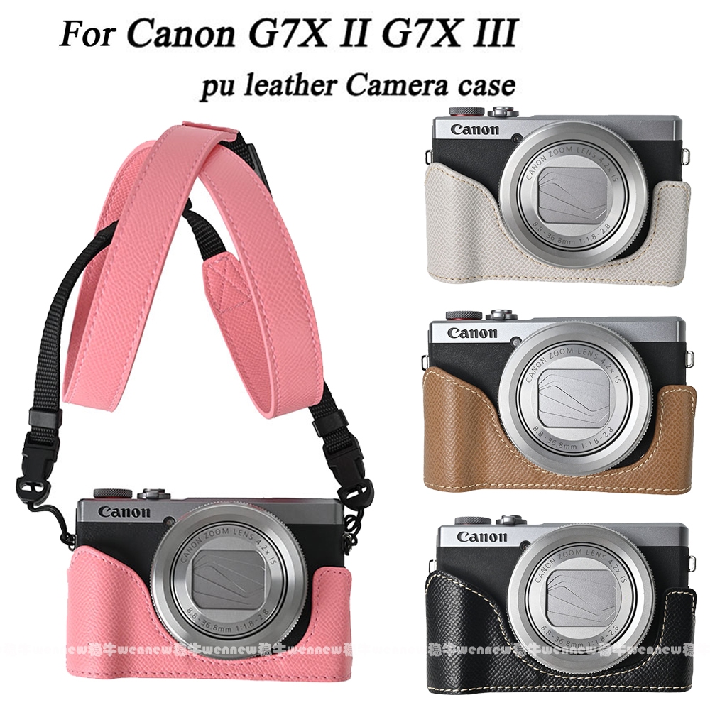 G7X2 G7X3 Casing Pu Leather Cover Camera Case Half Body for Canon G7X II G7X III G7X Mark III II Camera Accessories Neck Shoulder Strap