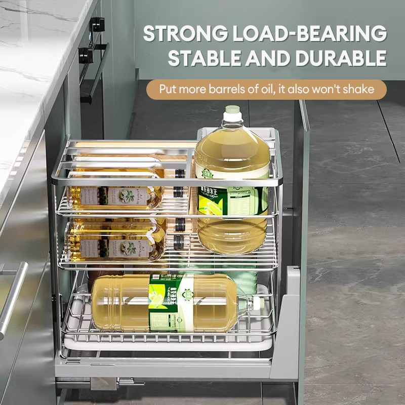 GAA Stainless Pull Out Kitchen Cabinet Condiments Racks Organizer Seasoning Set Pull Out Tray Dish Cabinet Spice Rack