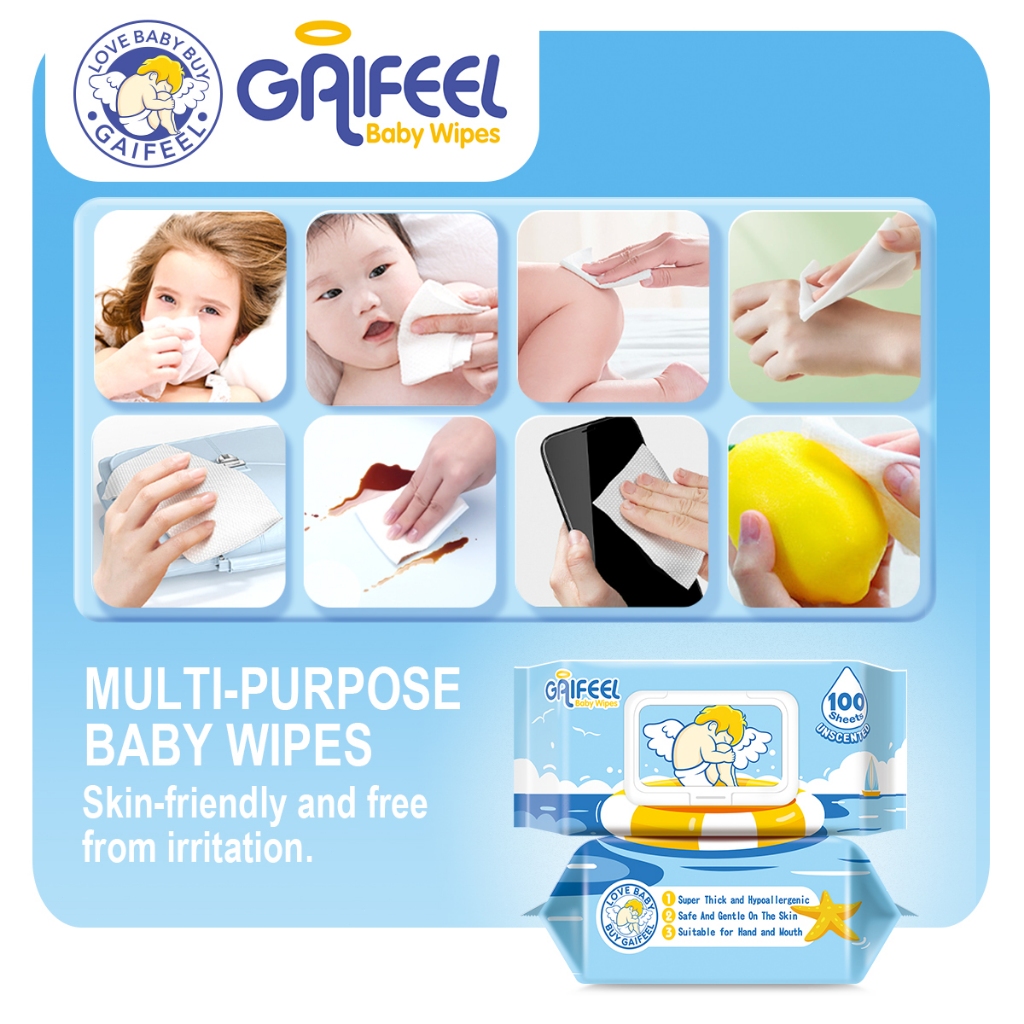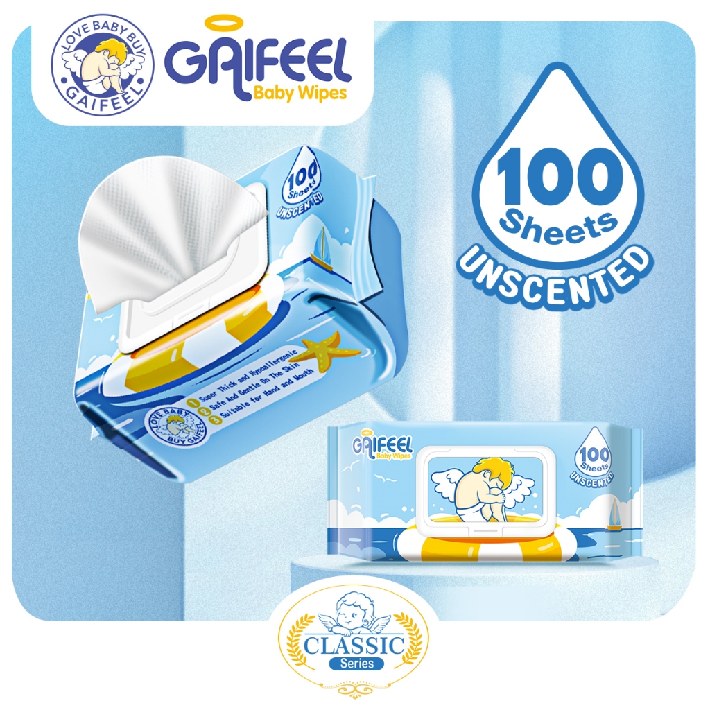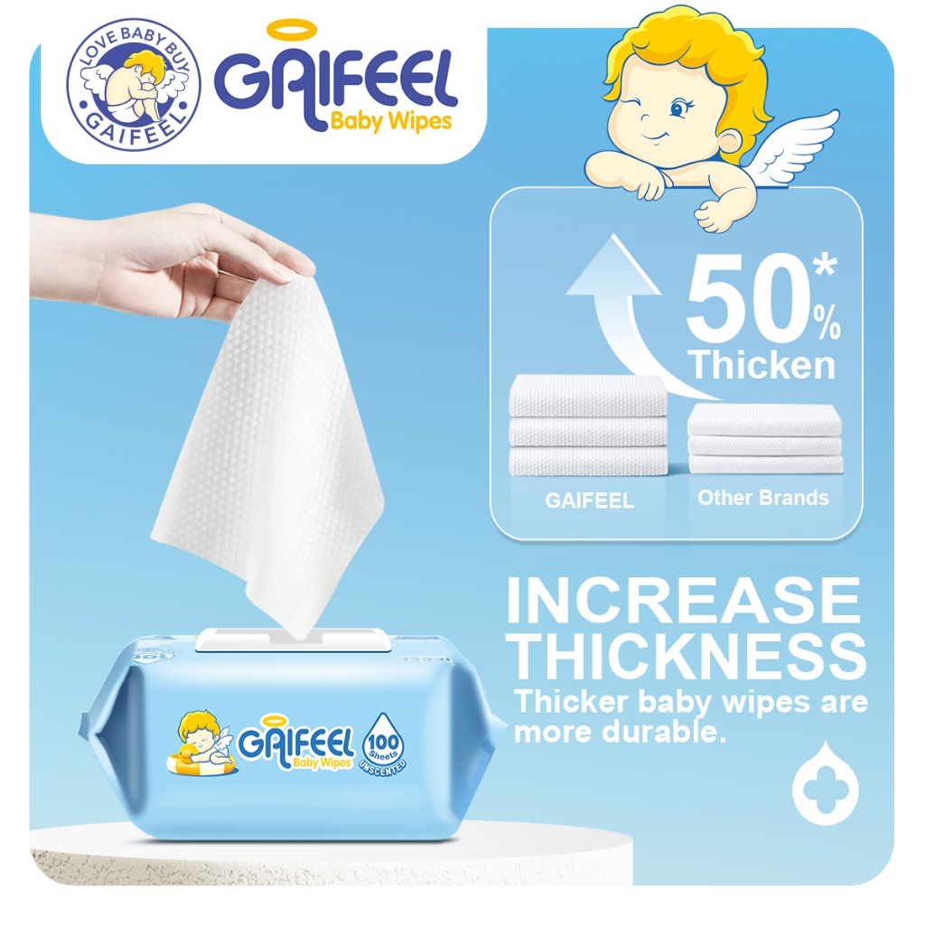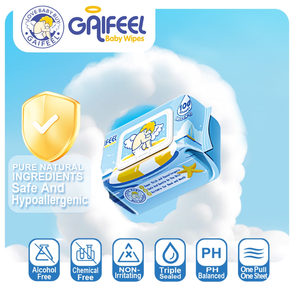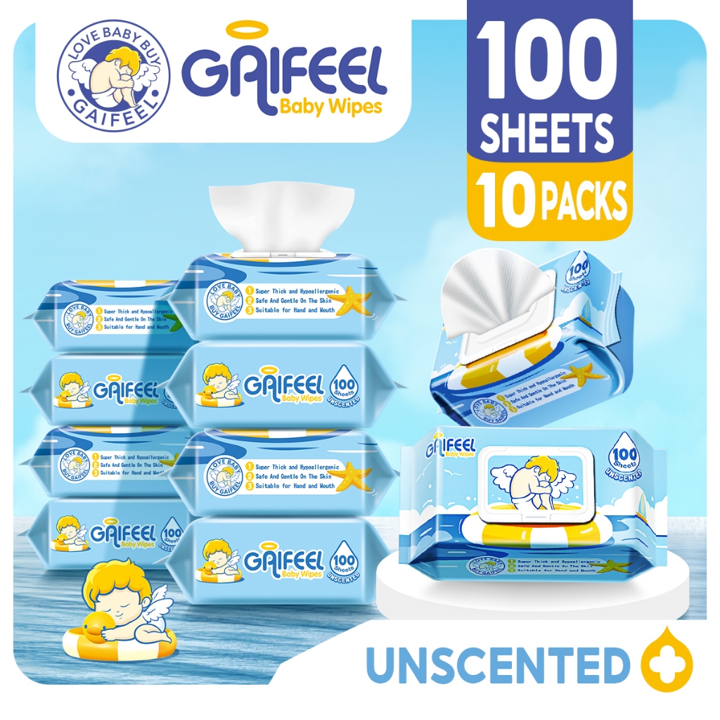 GAIFEEL Baby Wipes 100 Tender Sheets Pack of 10 Unscented Wet Wipes for Baby Soft Non-Alcohol