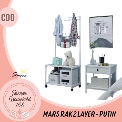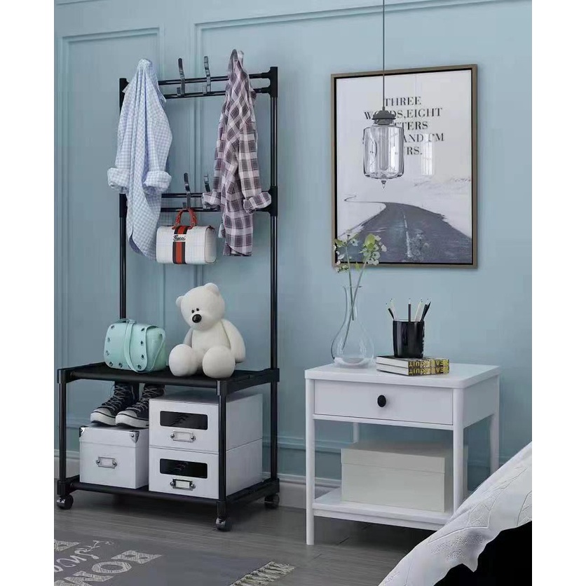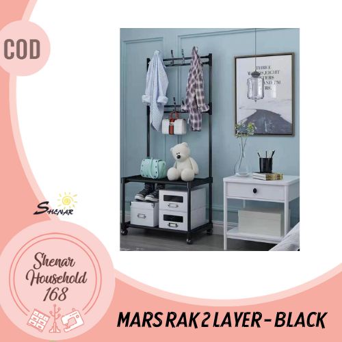 GANTUNGAN Mars RACK 2-tier Open Hanging Wardrobe STAND HANGER 4-wheel Multipurpose HANGER RACK - BOLE Size 56CM?93cm x 35CM X169CM