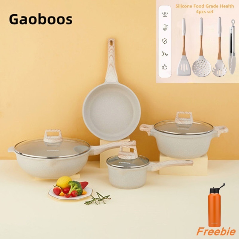 GAOBOOS 4-14pcs Non Stick Cookware Set Frying Pan Kitchen Wok Pot Induction Cookware with Cover COD