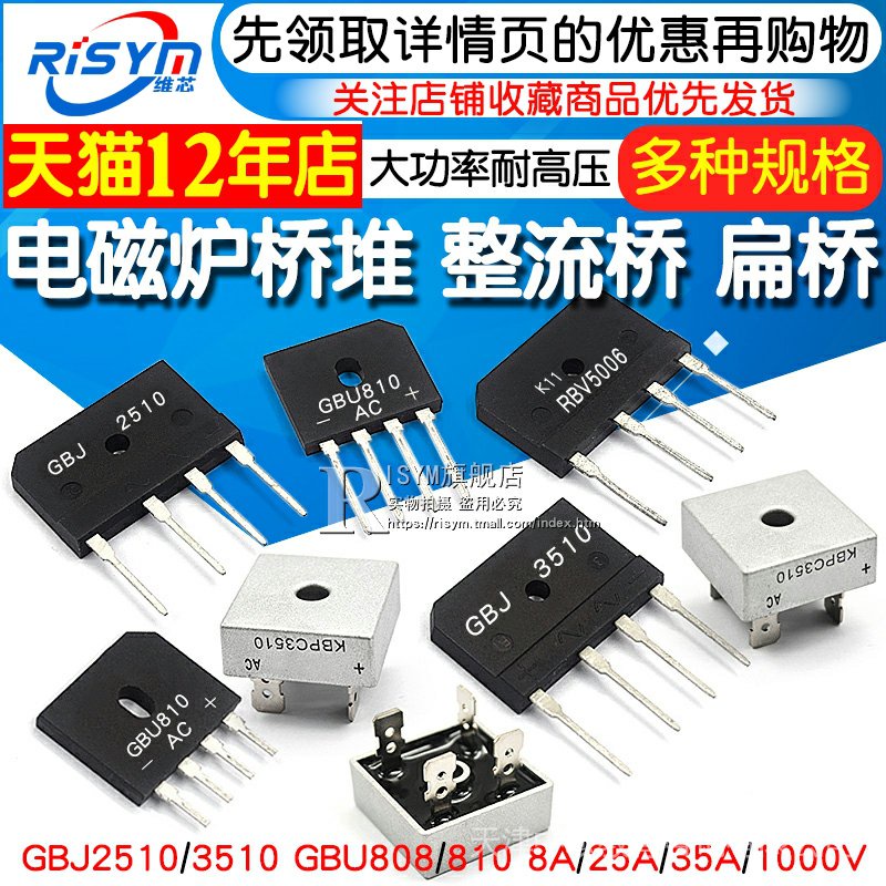 GBJ2510 3510 Induction Cooker Bridge Stack 8A/25A/1000V Rectifier GBU808/810/2008D15XB F1AE