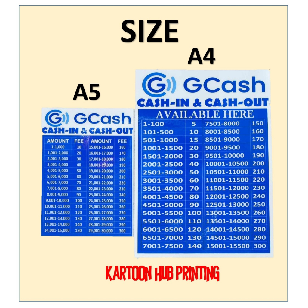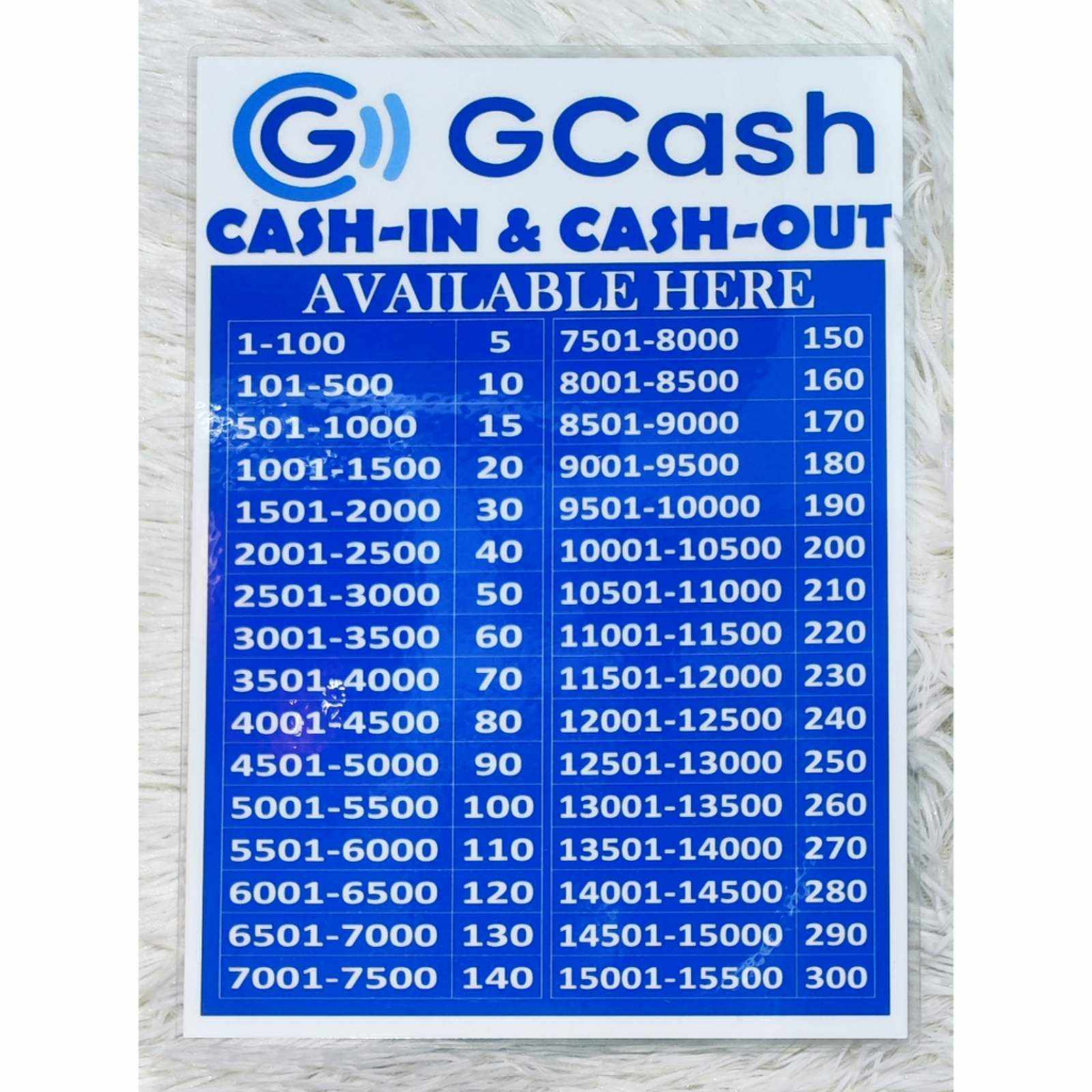 GCASH Cash-in/ Cash Out Fee Rates Signage Waterproof