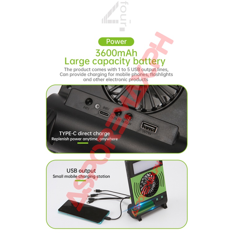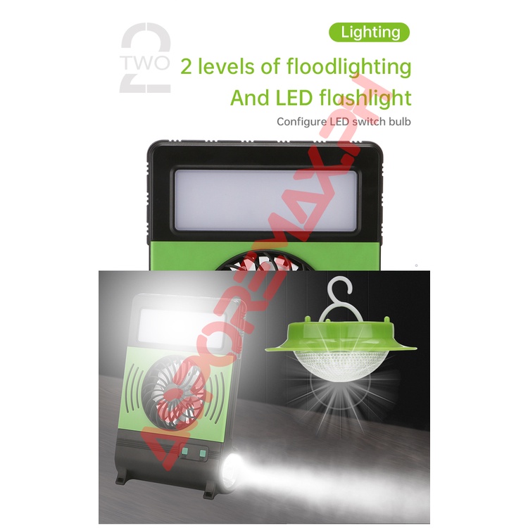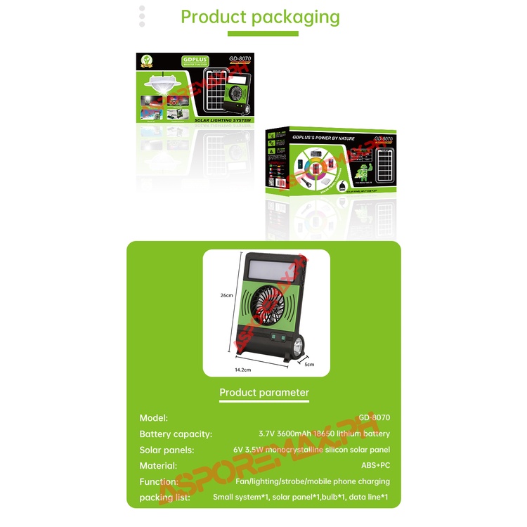 GDPLUS GD-8070 Solar Lighting System with LED Lighting Electric Fan Warning Light Phone Charging COD