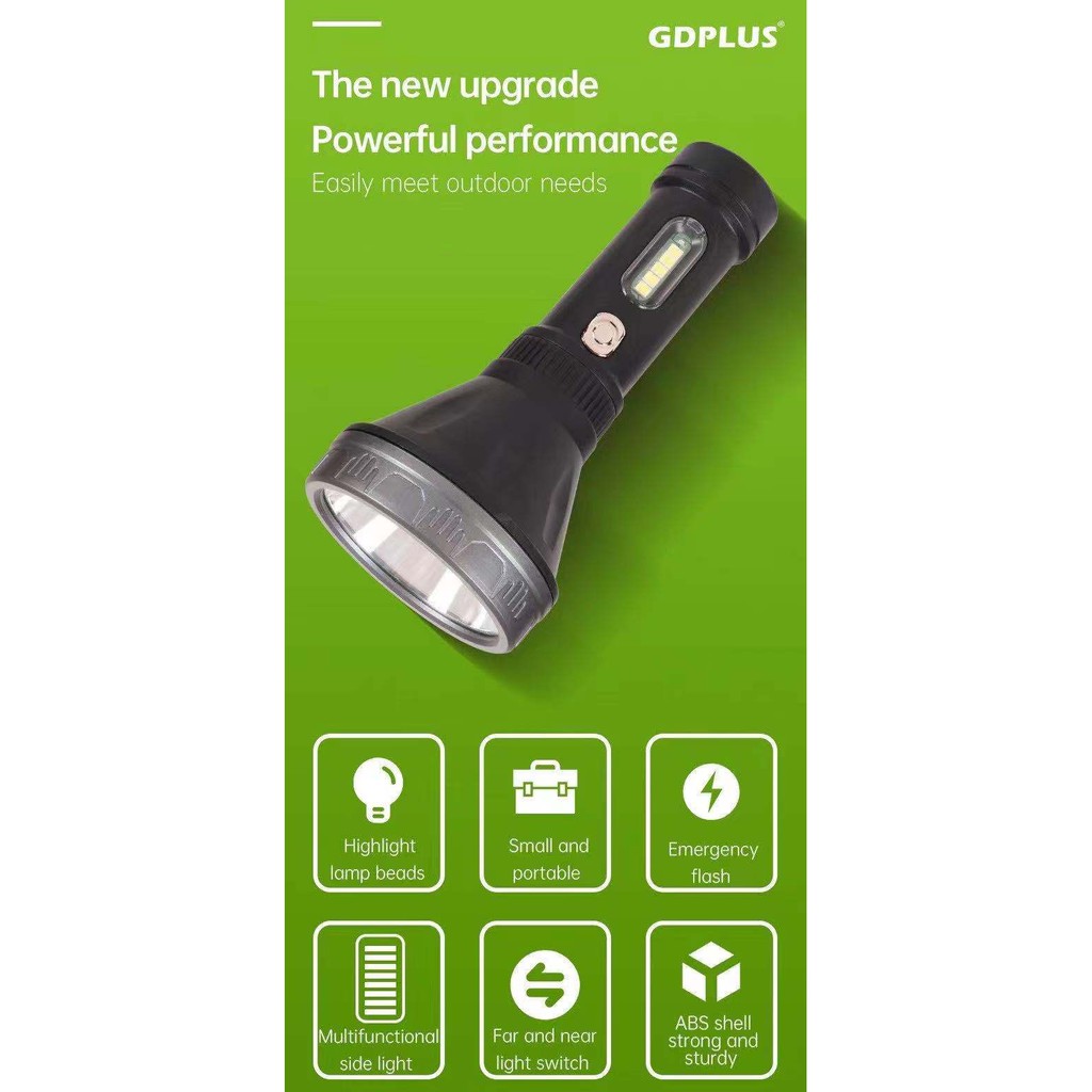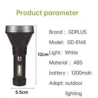 GDPLUS GD-8168 USB Ultra-Bright Flashlight LED Rhargable Compact Flash Spotlight Lamp Waterproof