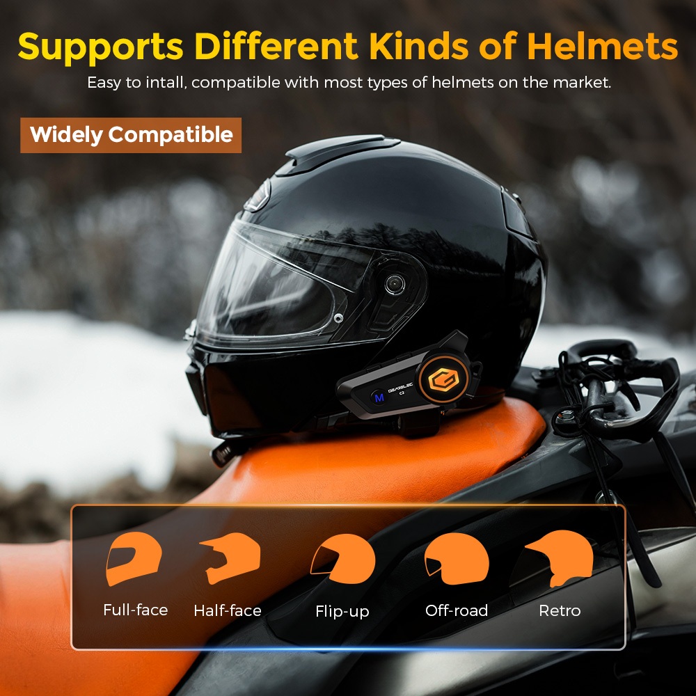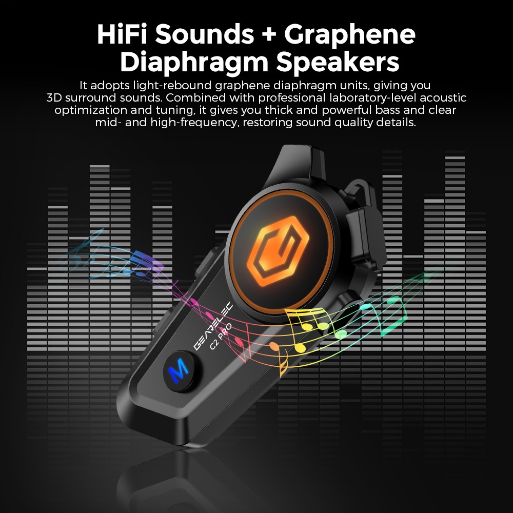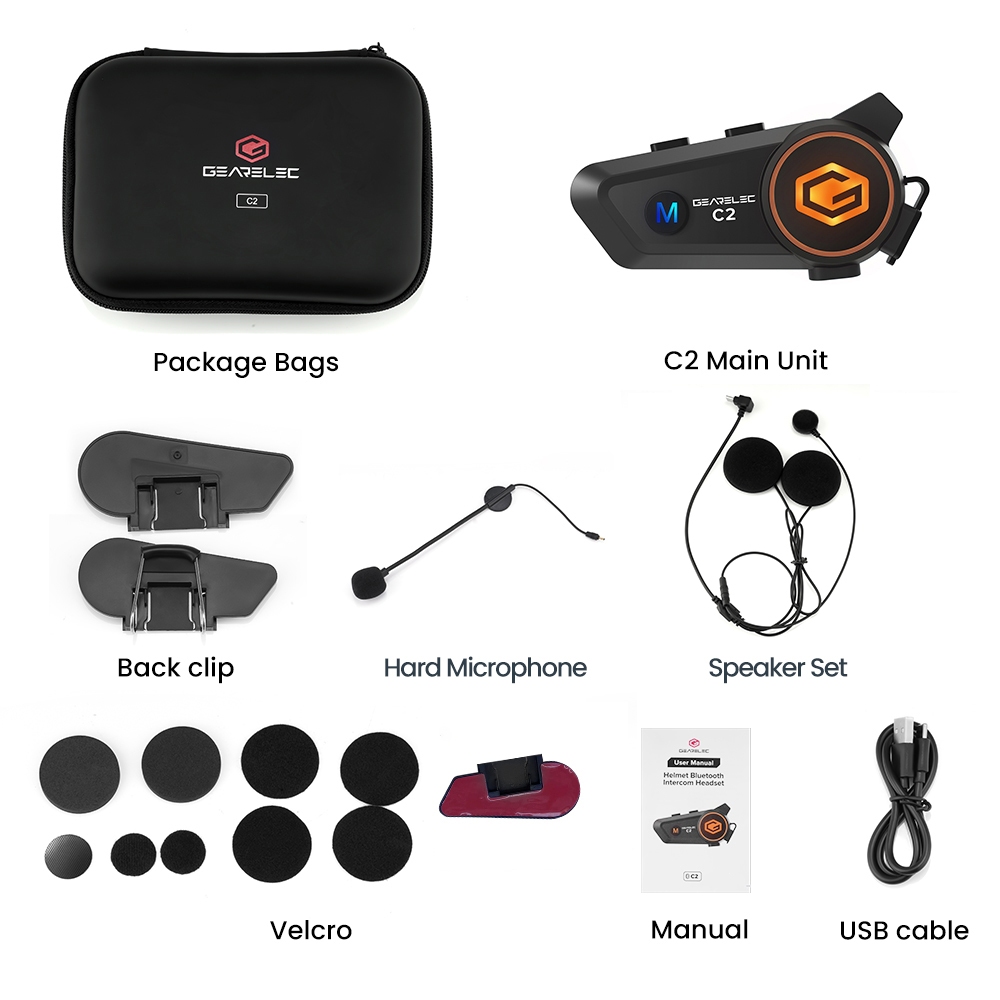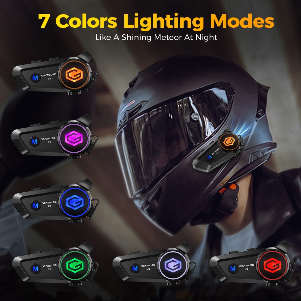 GEARELEC C2 Motorcycle Helmet Intercom Headset For 2 Riders Alone Listen To Music While In Intercom