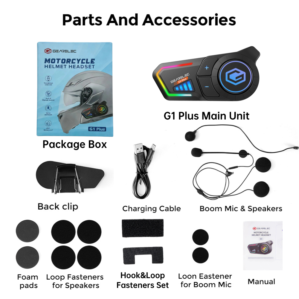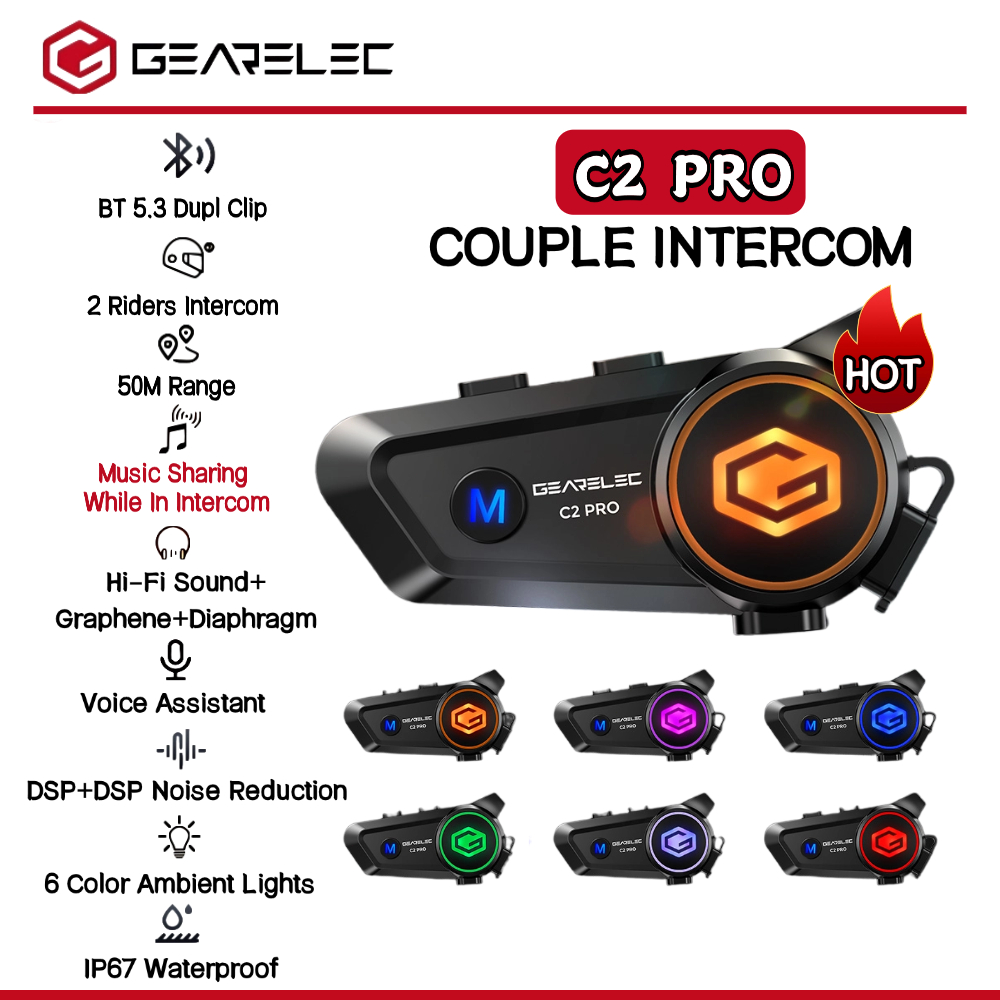 GEARELEC C2 Pro Motorcycle Helmet Intercom Headset 2 Riders For Music Sharing While In Intercom