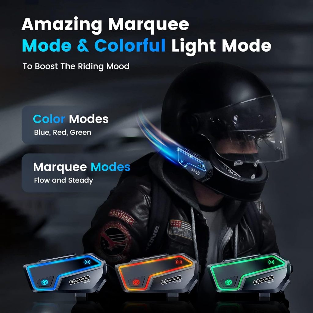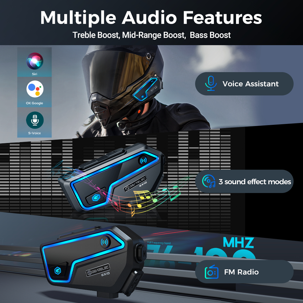 GEARELEC GX10 Helmet Headset Up To 10 Rider Group Intercom 2000m Range IP67 Waterproof With FM Radio