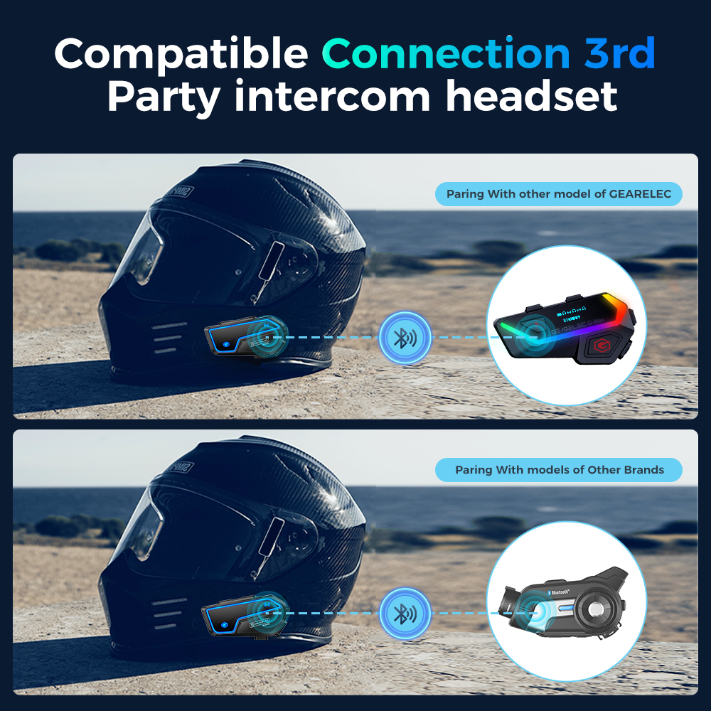 GEARELEC GX10 Motorcycle Helmet Intercom Headset For 10-Riders 2000M Bluetooth 5.2 IP67