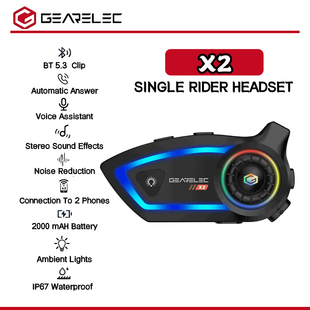 GEARELEC X2 Motorcycle Helmet Headset Auto Answer DSP/CVC Noise Cancellation IP67 Waterproof