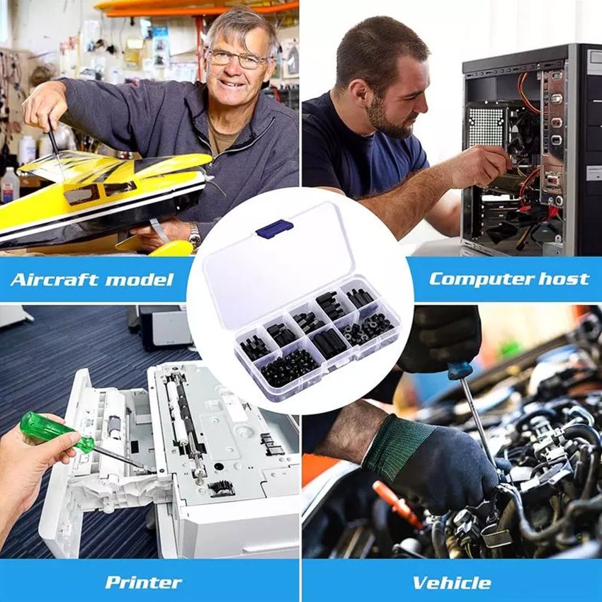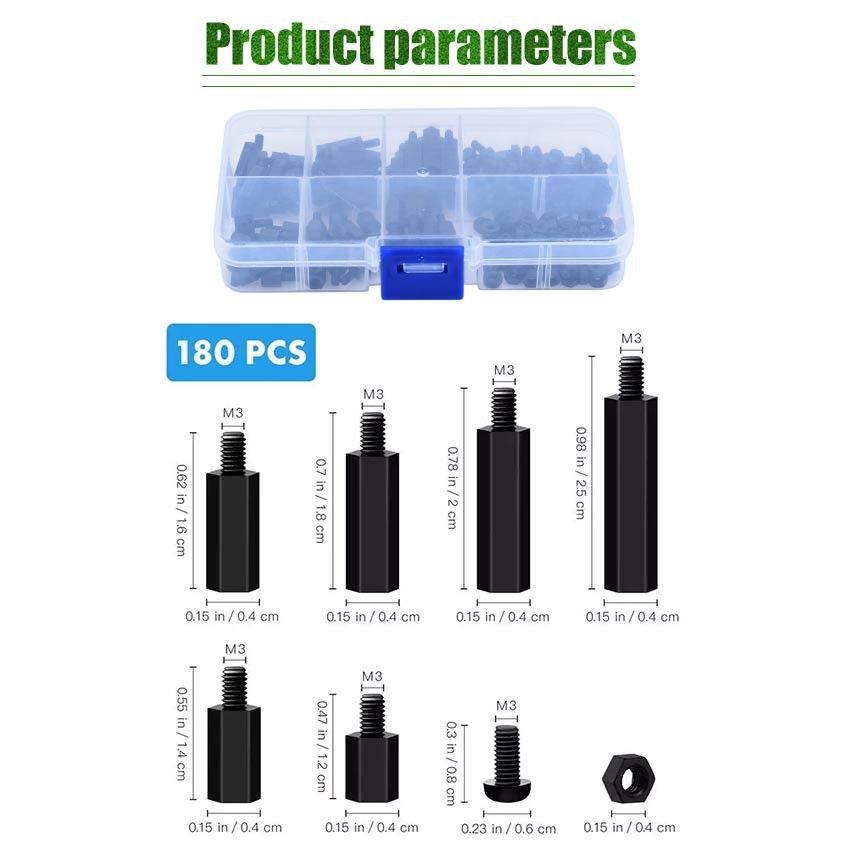 GEEBON 180pcs Hex Nylon Standoff Spacer Column Flat Head Nylon Male-Female Standoff Spacer Kit