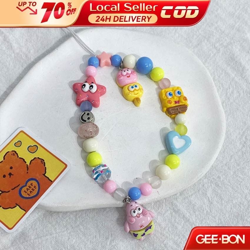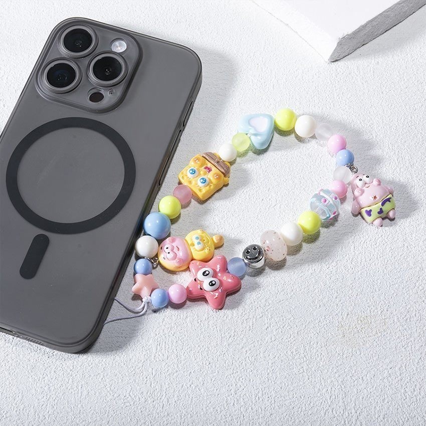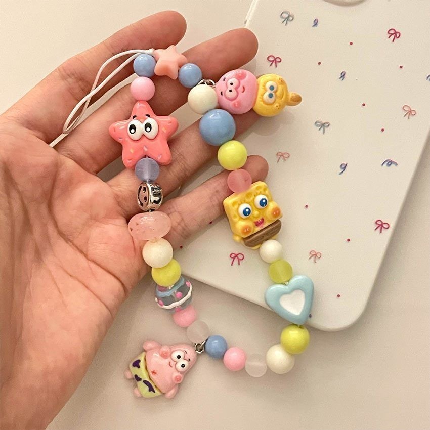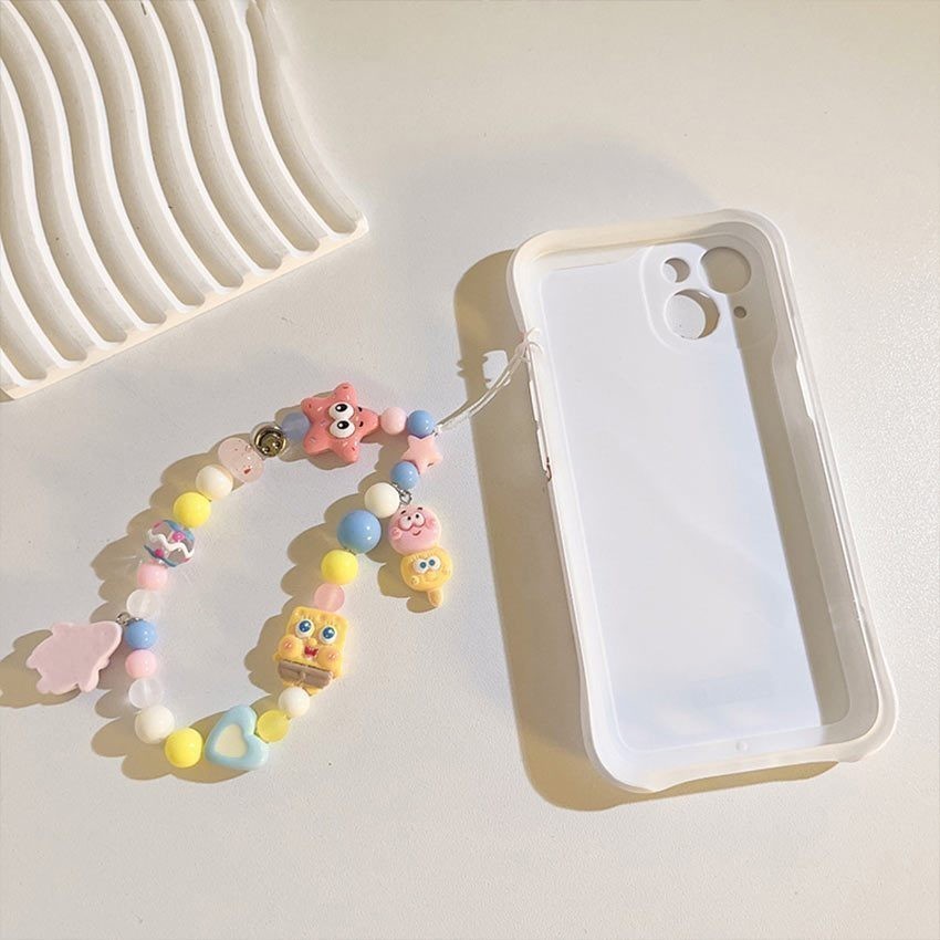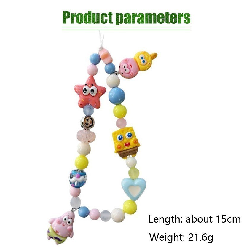 GEEBON Cartoon Spongebob Phone Lanyard Strap Polymer Clay Bracelet Anti-lost Keychain Charm Chain