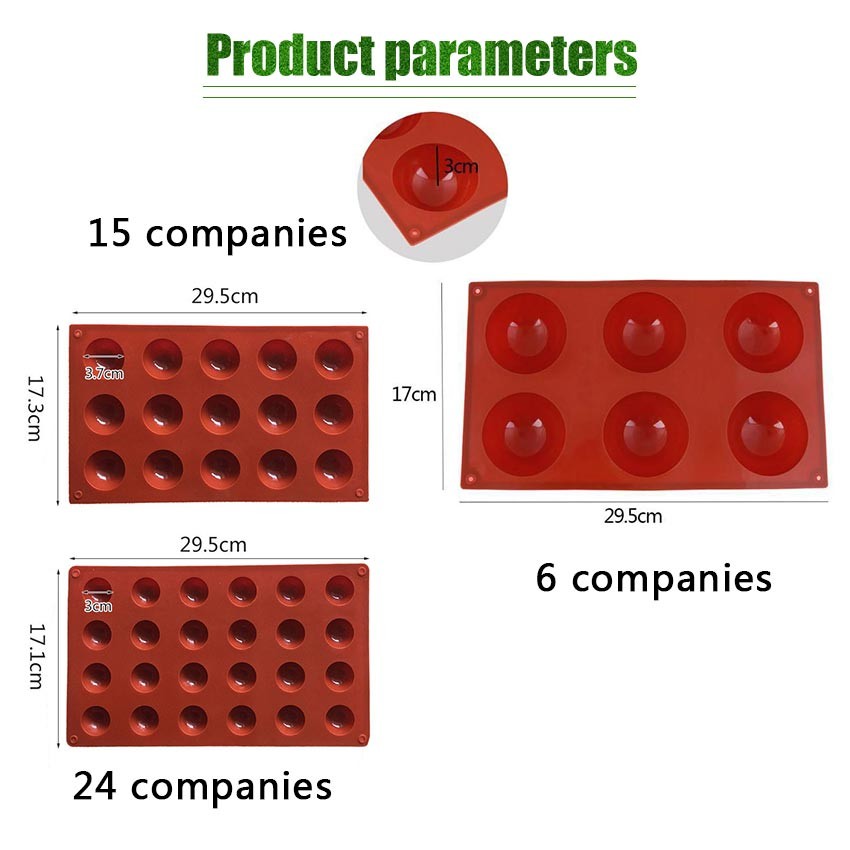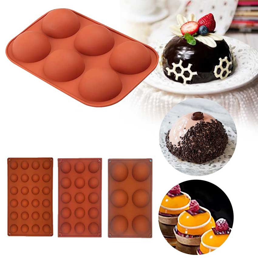 GEEBON Chocolate Round Mold Half Ball Mold Silicone Cake Baking Chocolate Molder 6/15/24 Holes
