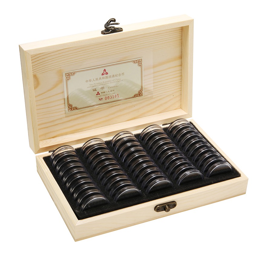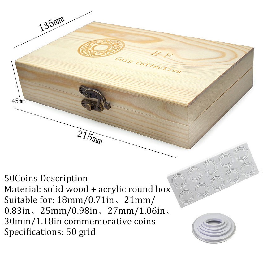 GEEBON Coin Storage Box Capsule Case Wooden Coin Collection Display Box