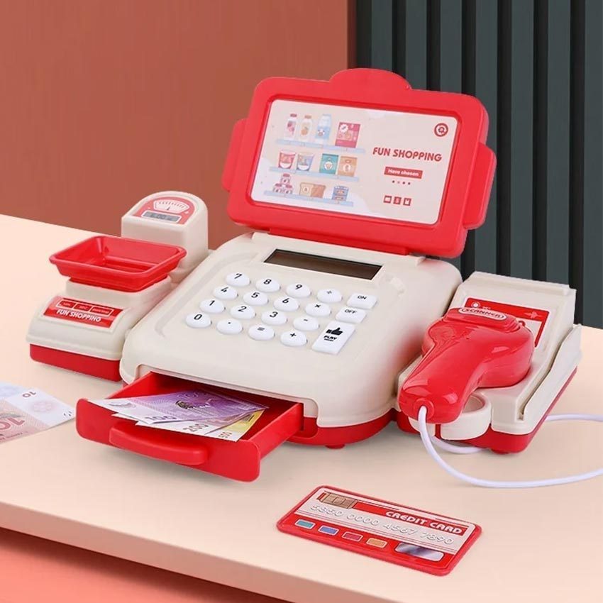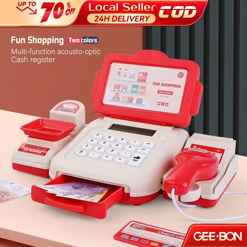 GEEBON Counter Cashier Toys Music Simulate Shopping Currency Cash Register Pretend Play Toys Kids