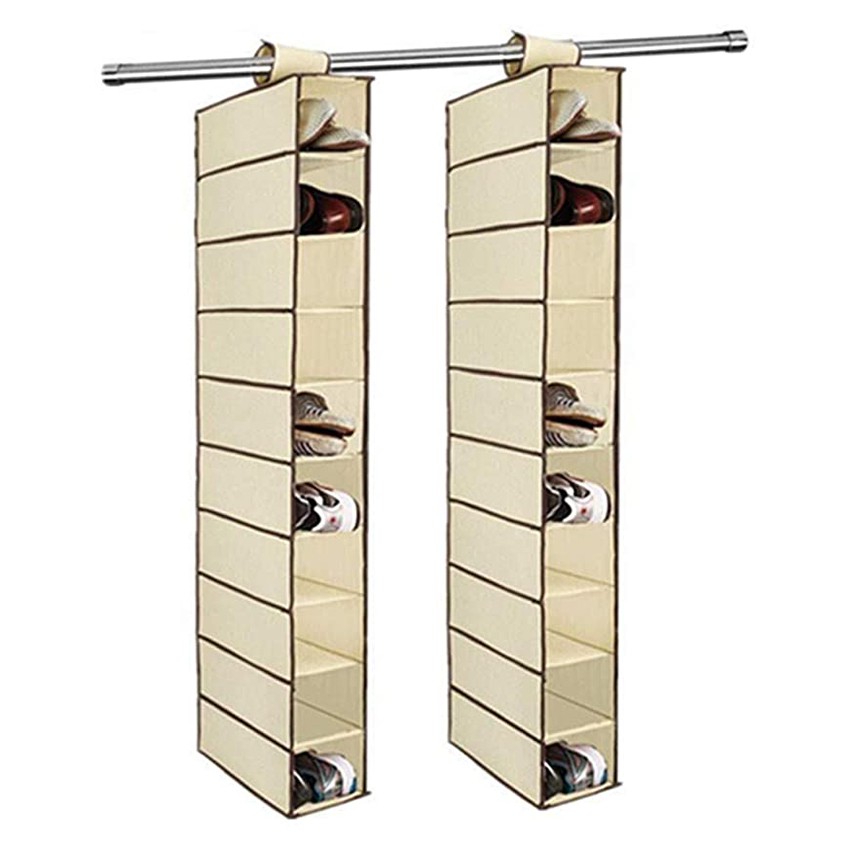 GEEBON Wardrobe Hanging Bag Closet Organizer Folding Clothes Storage Hanging Shoe Bag Ten Layers