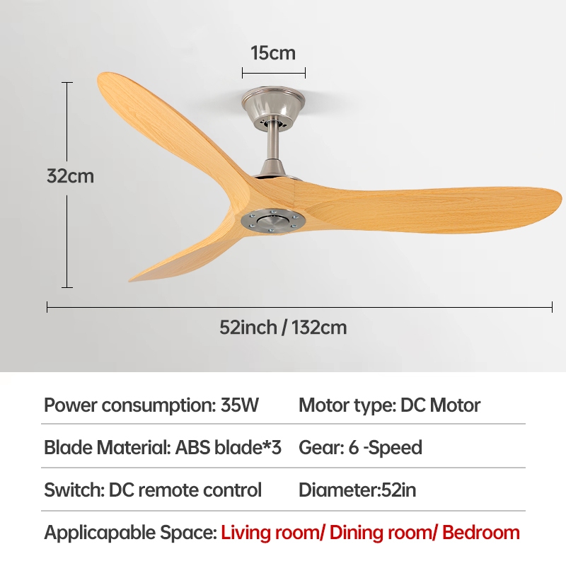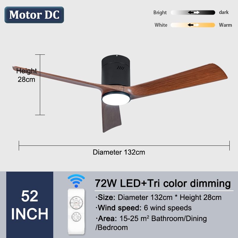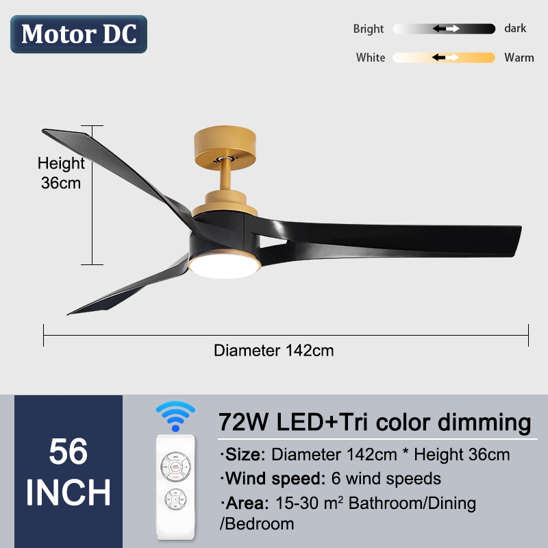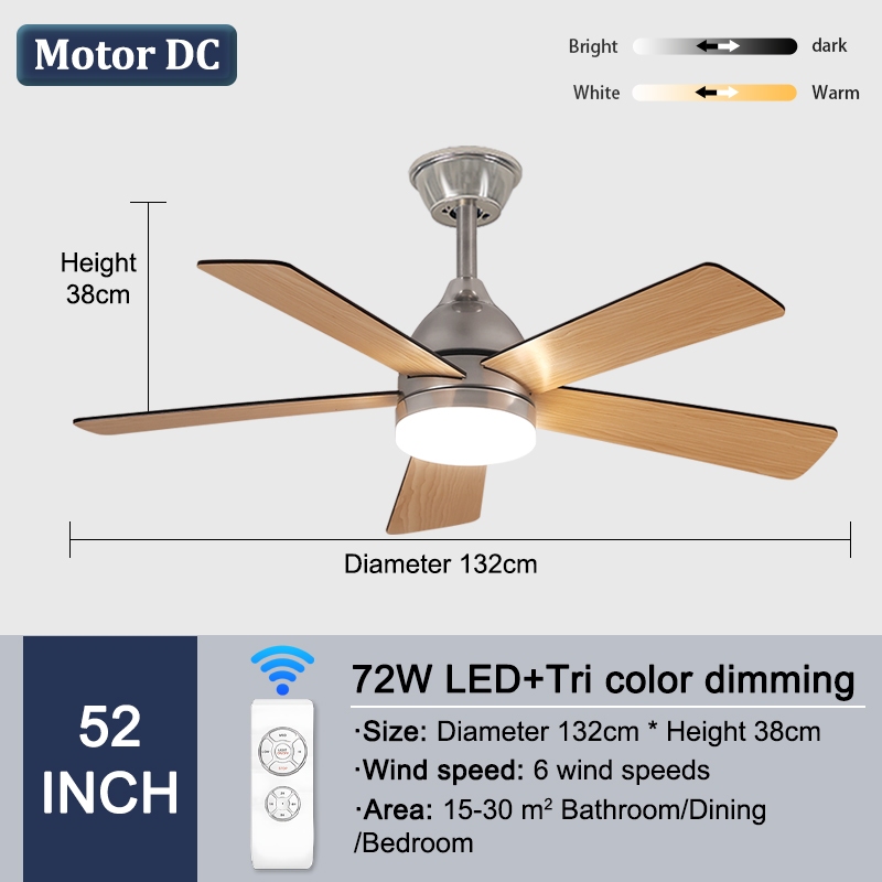 GEJIESE Ceiling Fan With Light 42/48/52 Inch Tri Color Light With Fan Ceiling 3 Blades Nordic DC Motor Industrial Ceiling Fan Big With Remote Control For Home