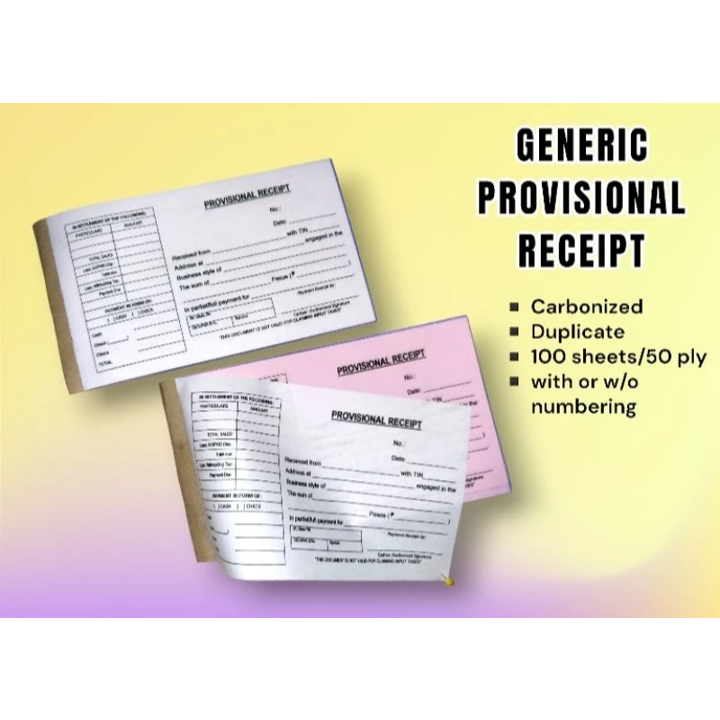 GENERIC ACKNOWLEDGEMENT RECEIPT / PROVISIONAL RECEIPT / COLLECTION RECEIPT / NORMAL RECEIPT