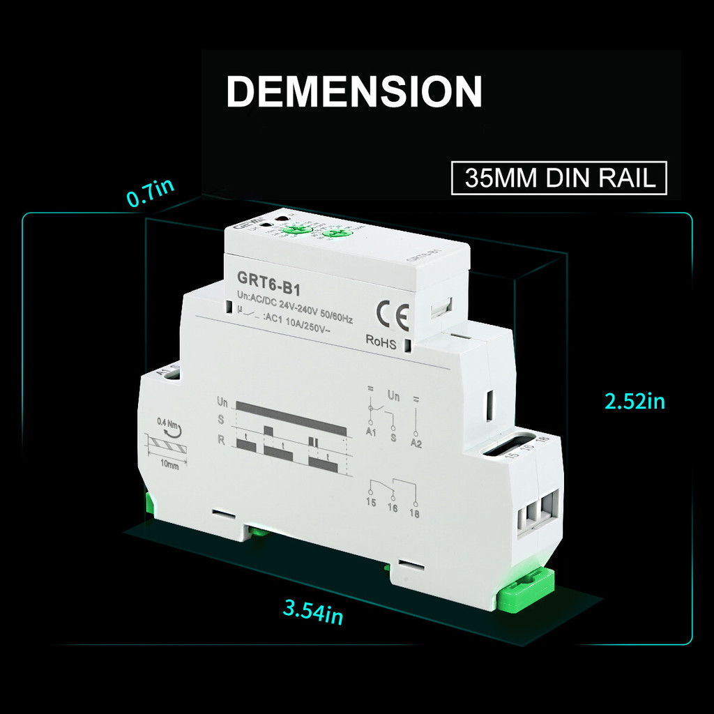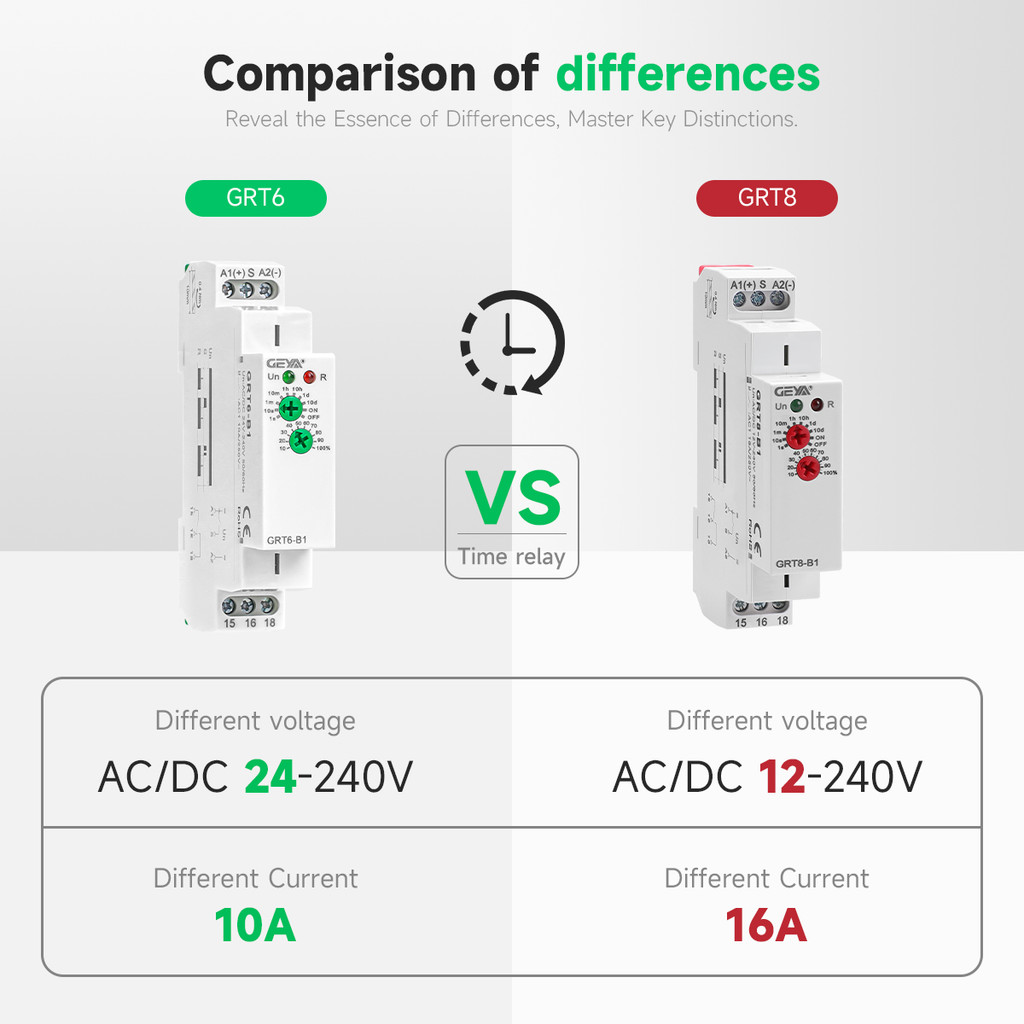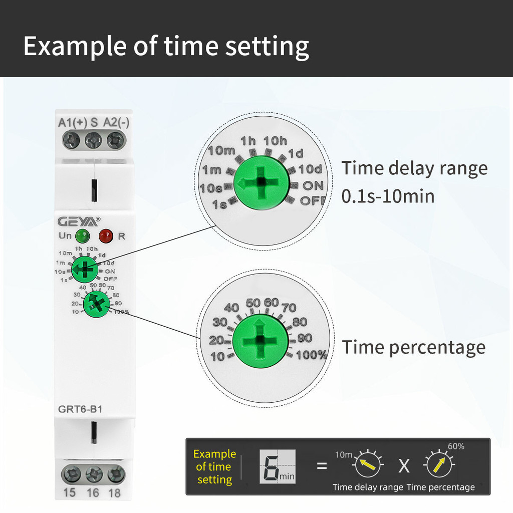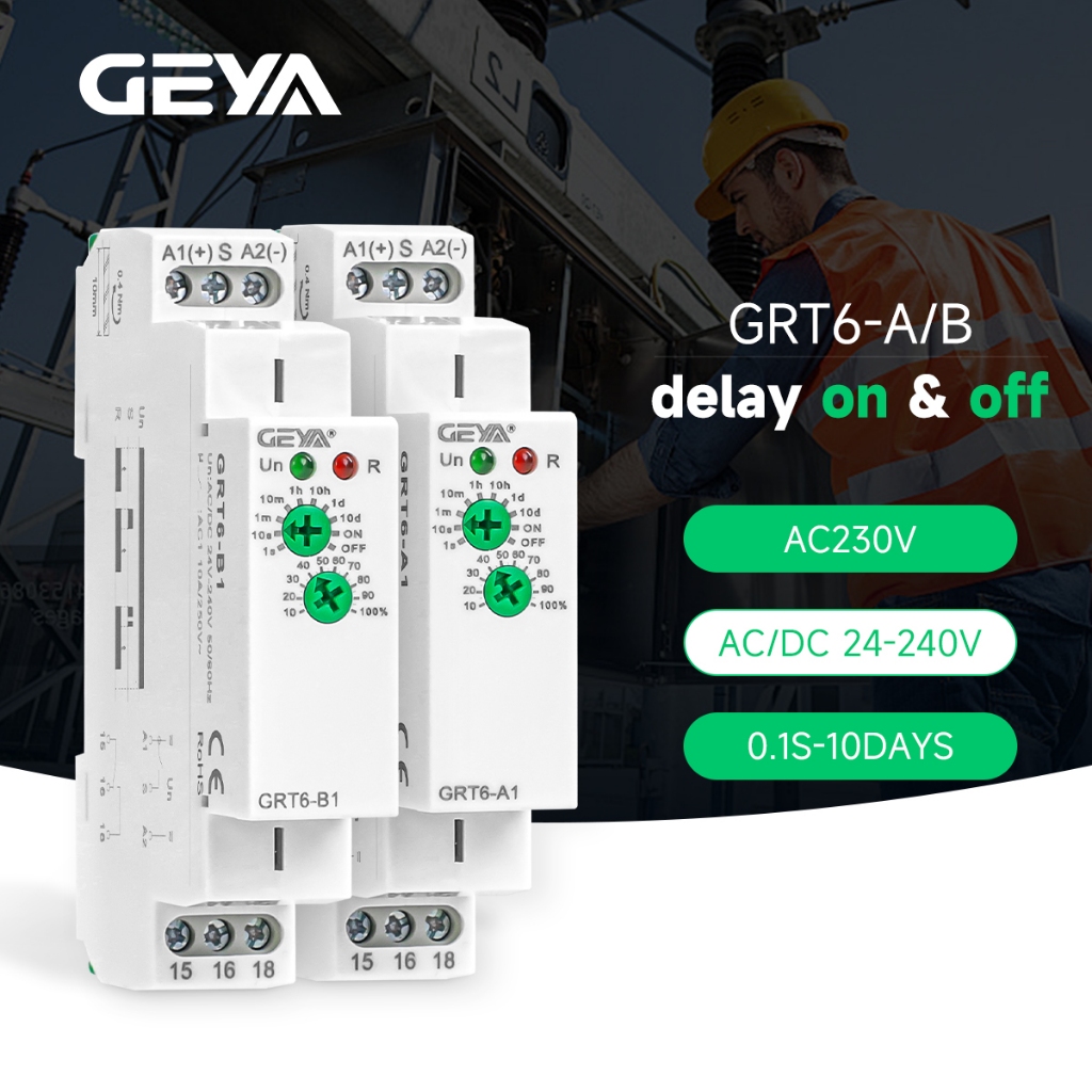 GEYA GRT6-AB type On Delay Off Delay Timer Relay Time Delay Relay Switch AC/DC24V-240V 10A Din Rail