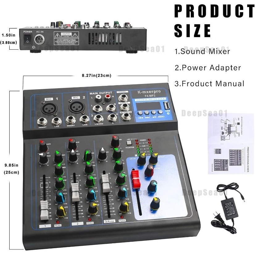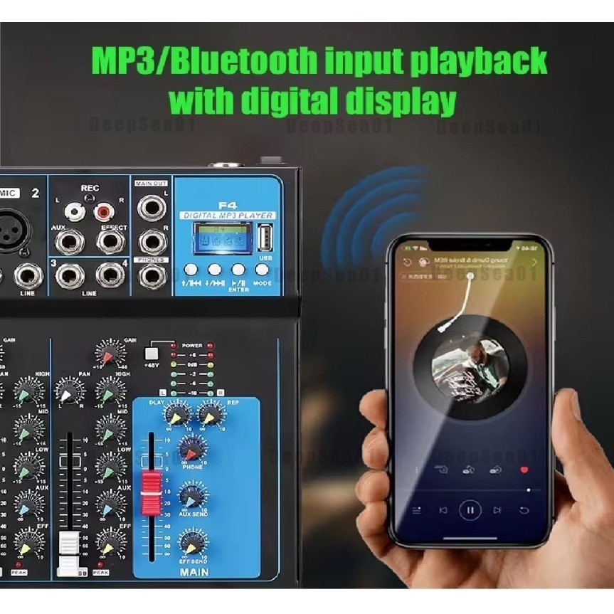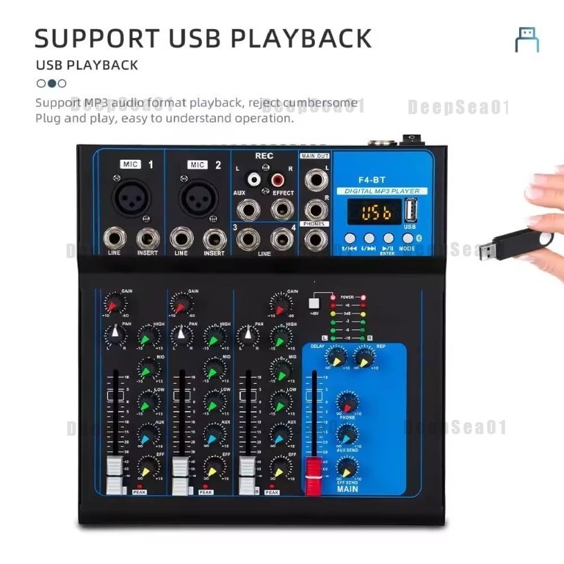GH4 Portable Audio Mixer 4 Channel Mixers with Bluetooth USB for Recording DJ Stage Karaoke Music Applications Mixer