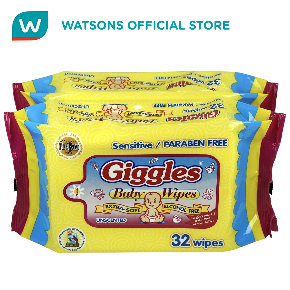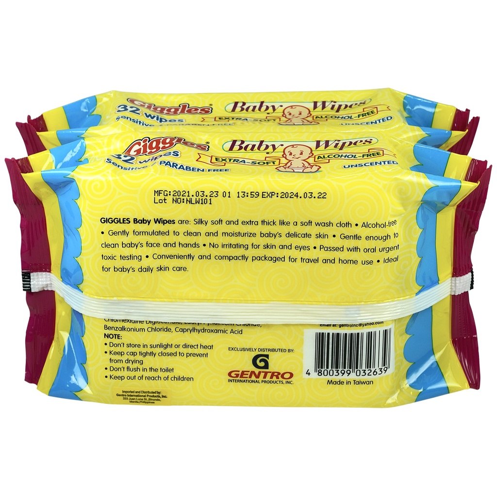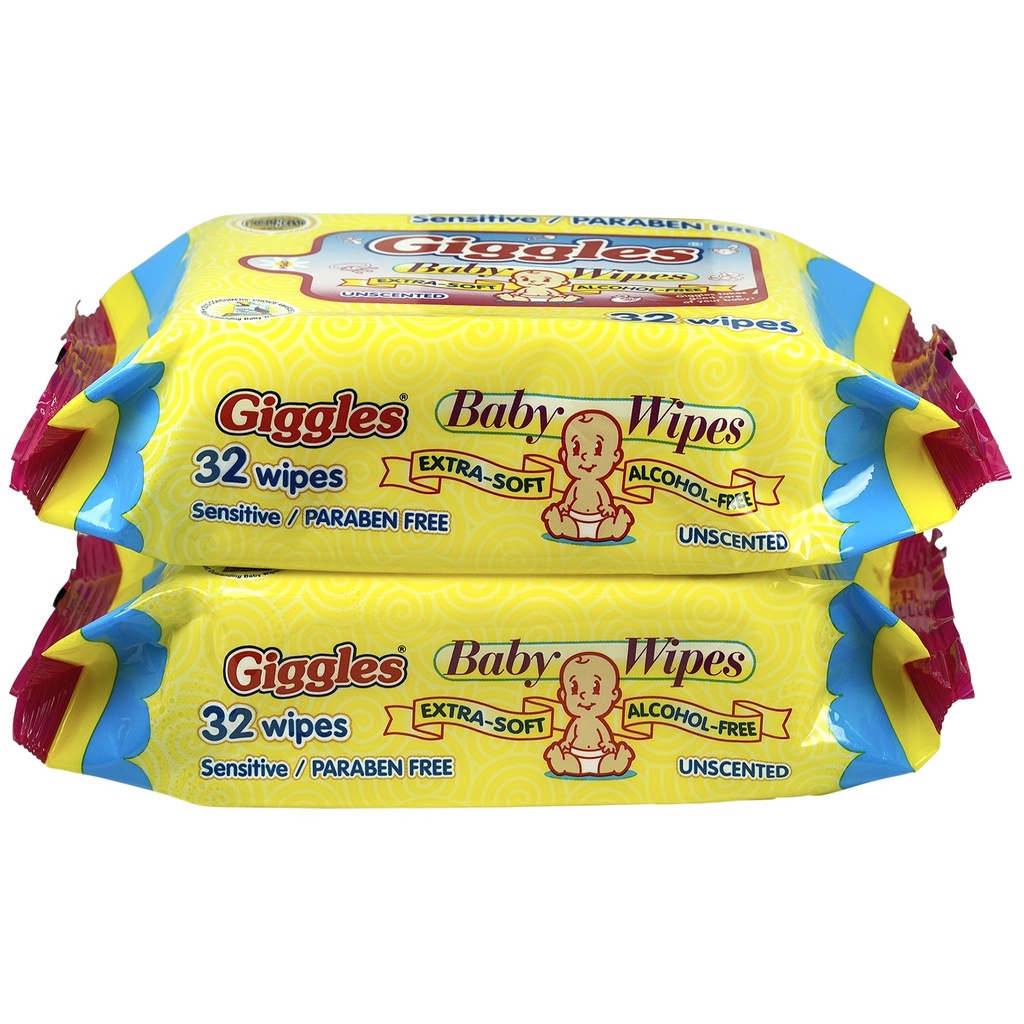 GIGGLES Baby Wipes Unscented 32 wipes x 2 packs