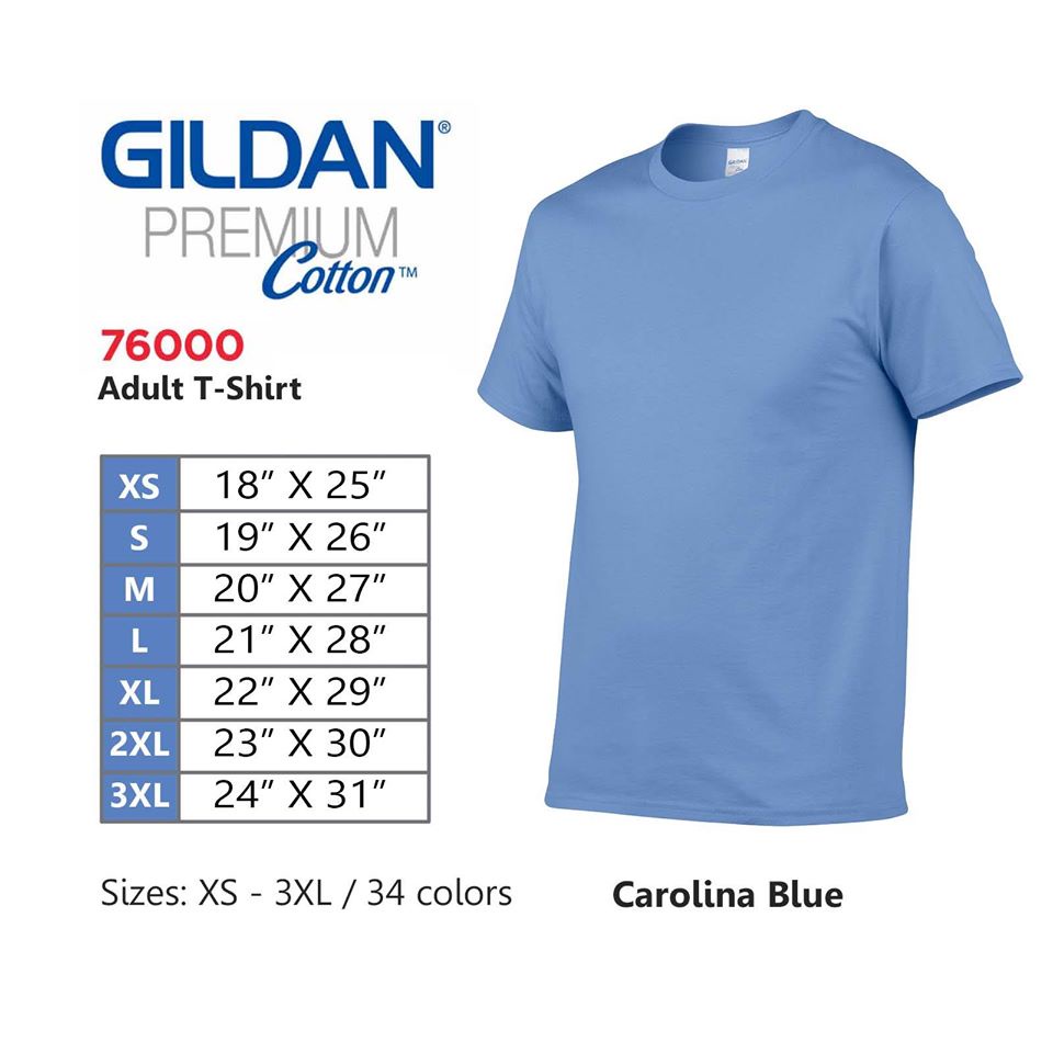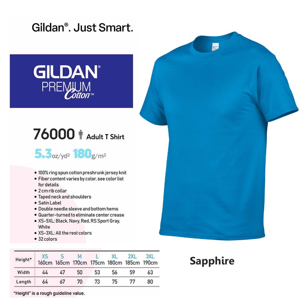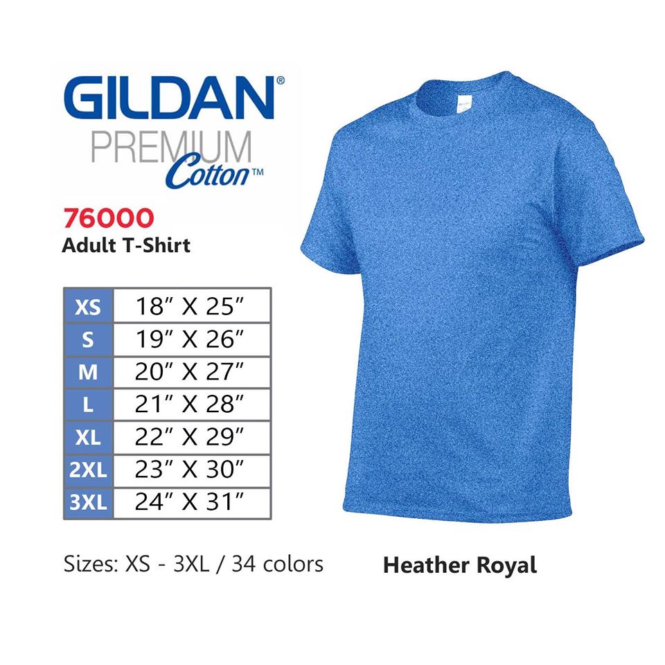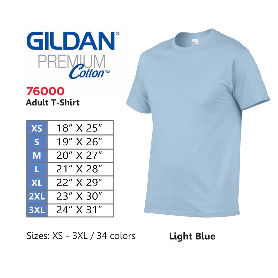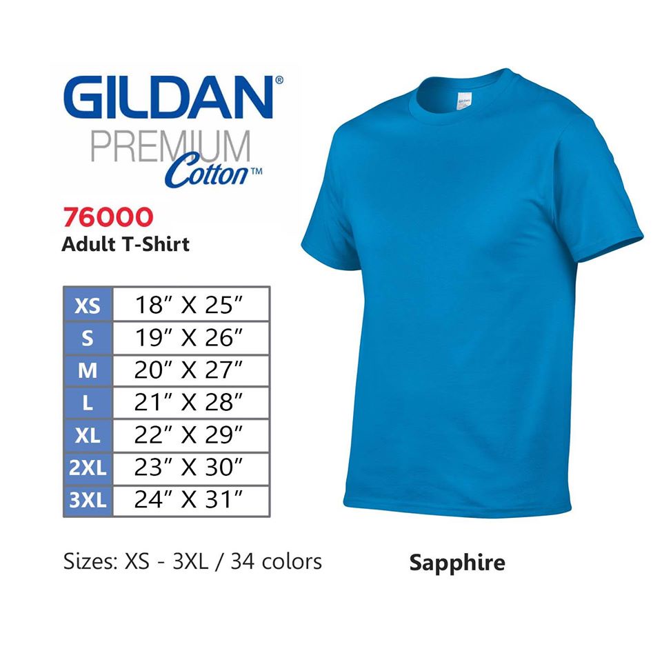 GILDAN Premium Cotton 76000 T-shirt (Navy,Royal,Sapphire,Heather Royal,Carolina Blue,Light Blue)