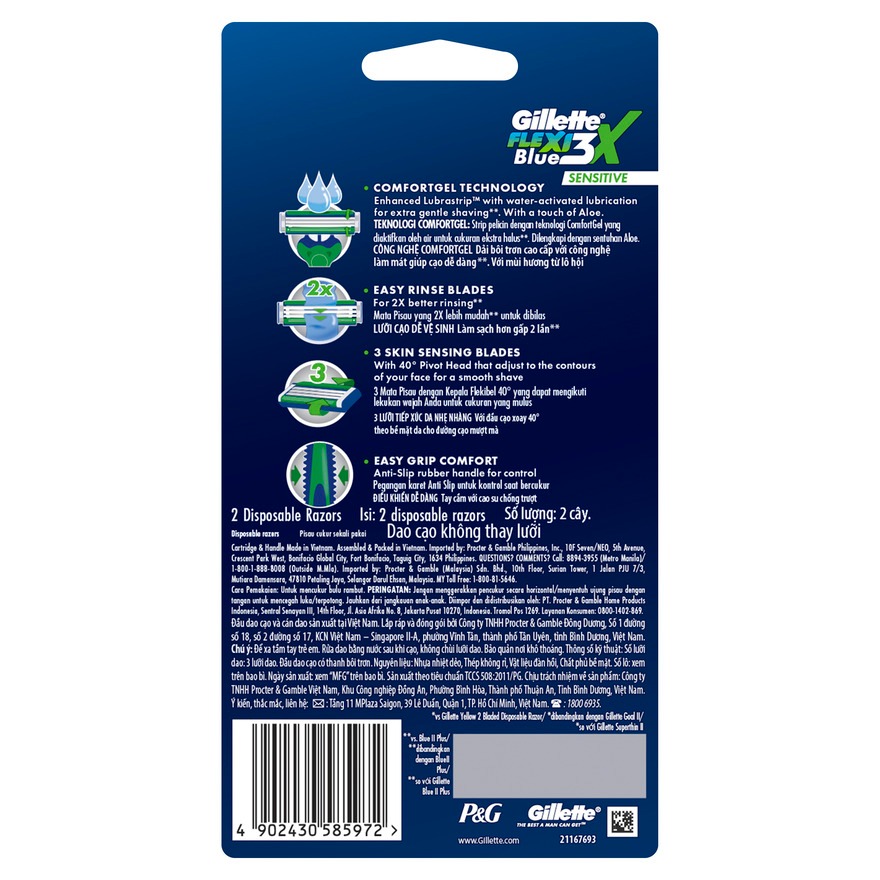 GILETTE Blue3X Flexi Sensitive Disposable Razor 2s Pack