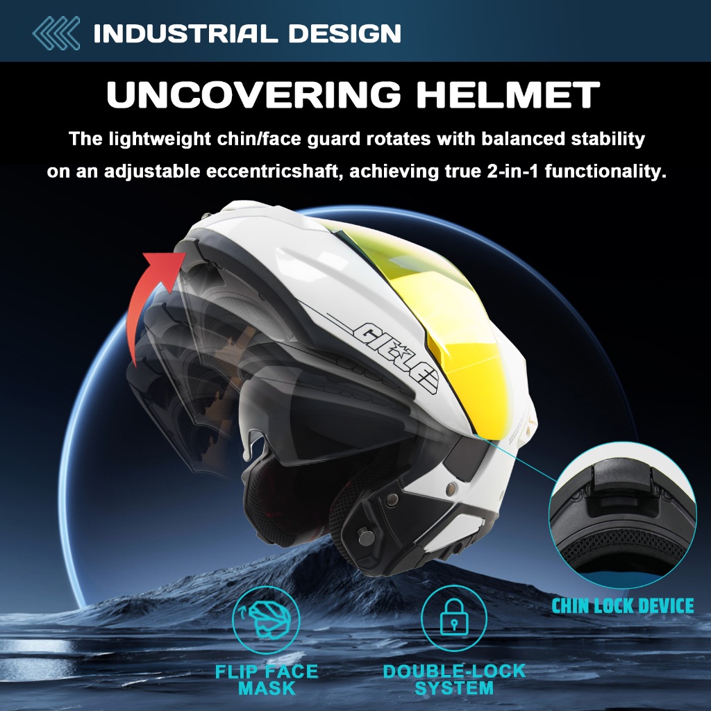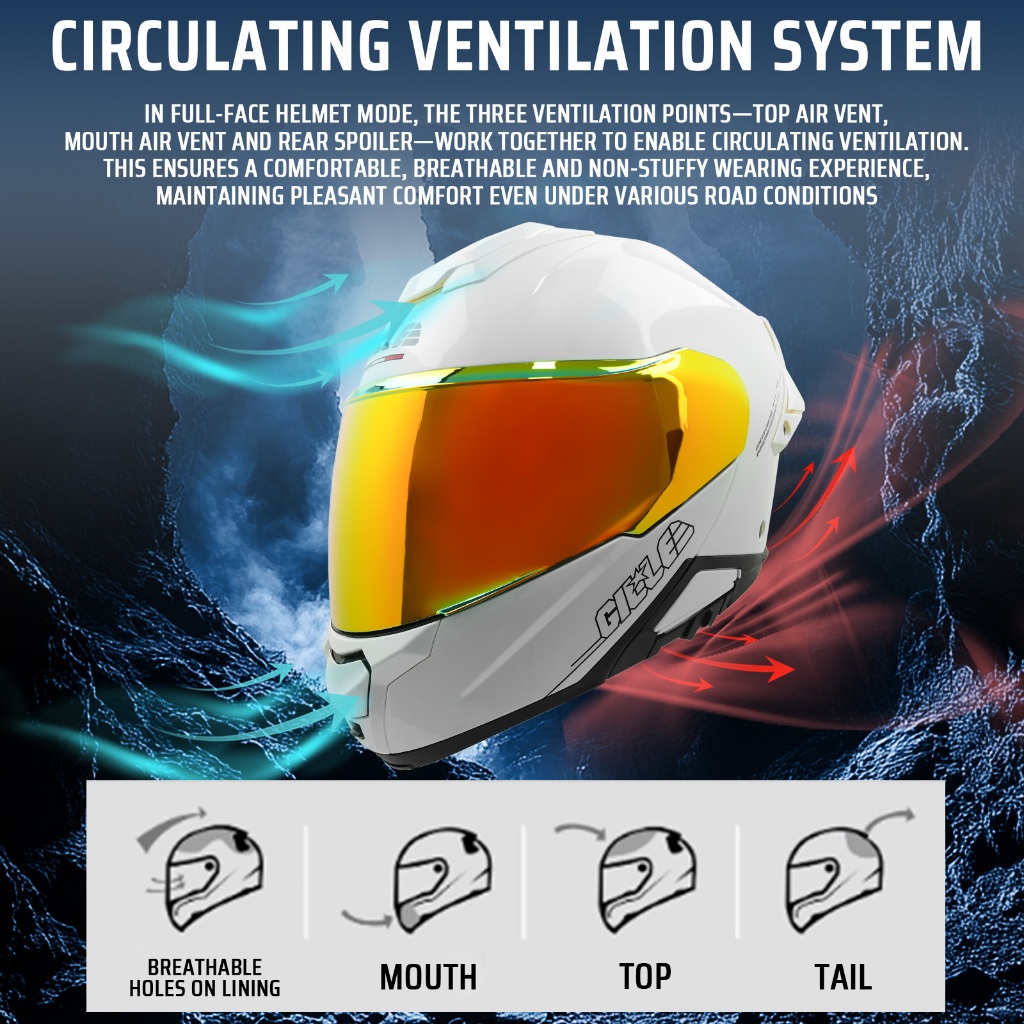 【Flip-Up】GILLE Orion Modular Dual Visor Helmet Full Face for Motorcycle With Free Clear VIosr AF-10