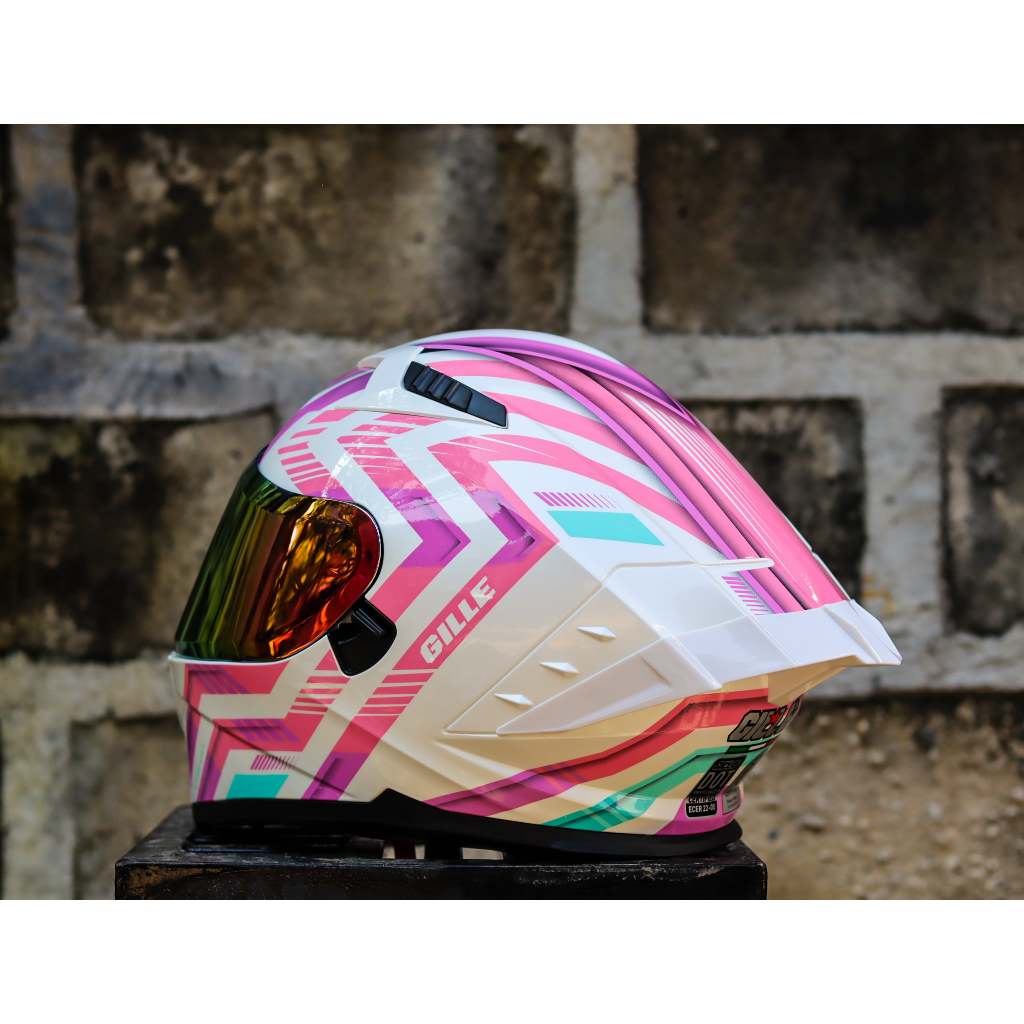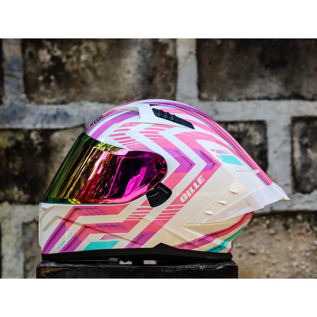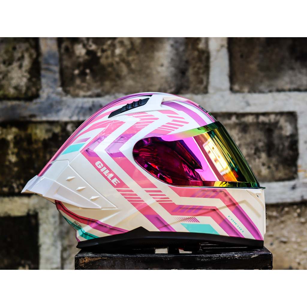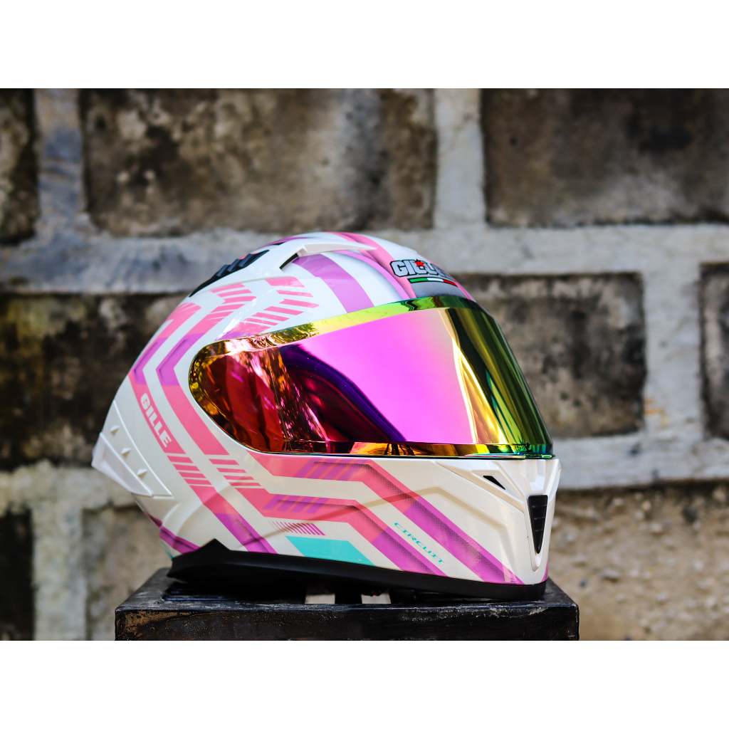 GILLE HELEMT CIRCUIT MONACO WHITE PINK PURPLE DUAL VISOR WITH FREE CLEAR LENS