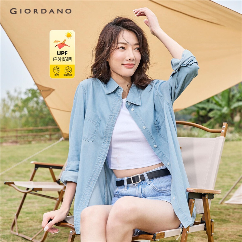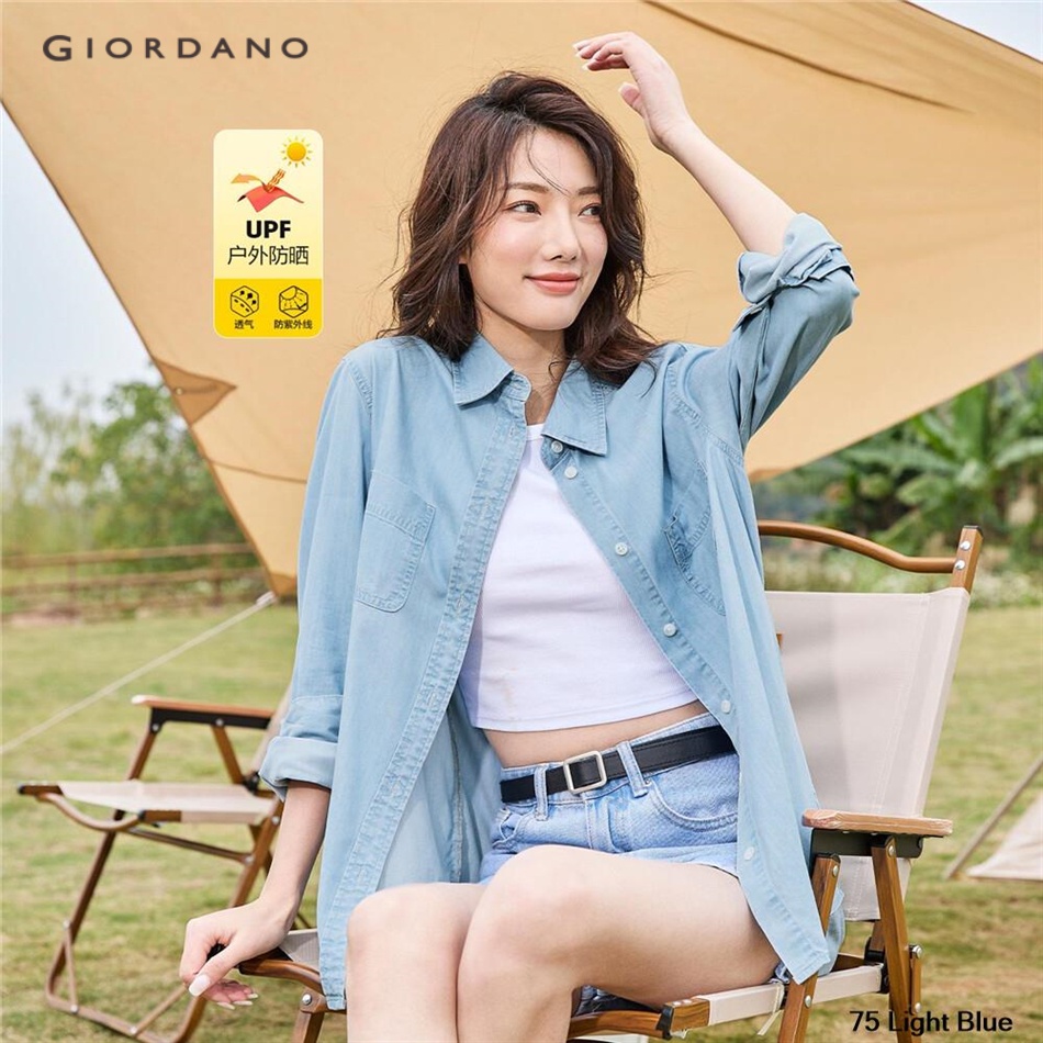 GIORDANO Women High-Tech Sun-Proof Long-Sleeve Denim Shirt 13342222