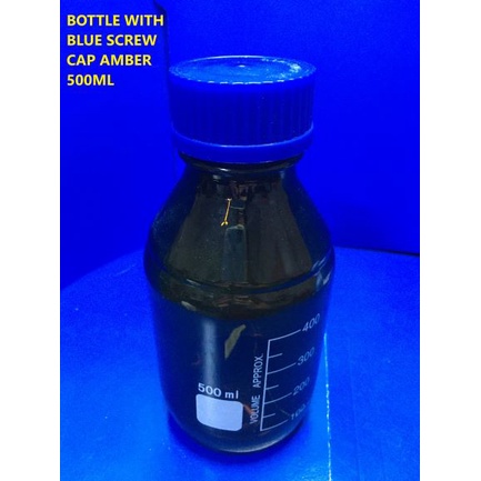GLASS REAGENT BOTTLE WITH BLUE SCREW CAP (AMBER)