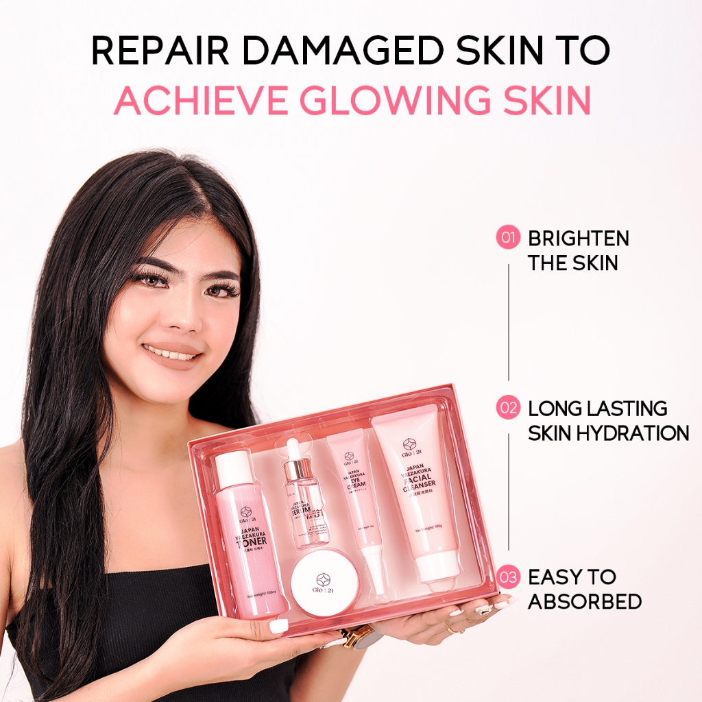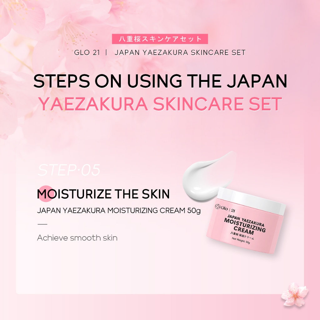 GLO21 JAPAN YAEZAKURA SKINCARE SET-Morning and Night Routine Cleanser Hydrating Toner Serum Smooth