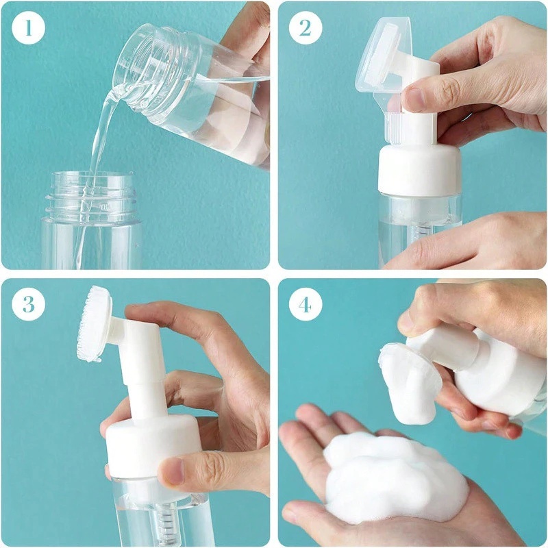 2.11oz Foam Bottle Travel Bottle Split Bottle Container With Press Massage Scrub Silicone Brush
