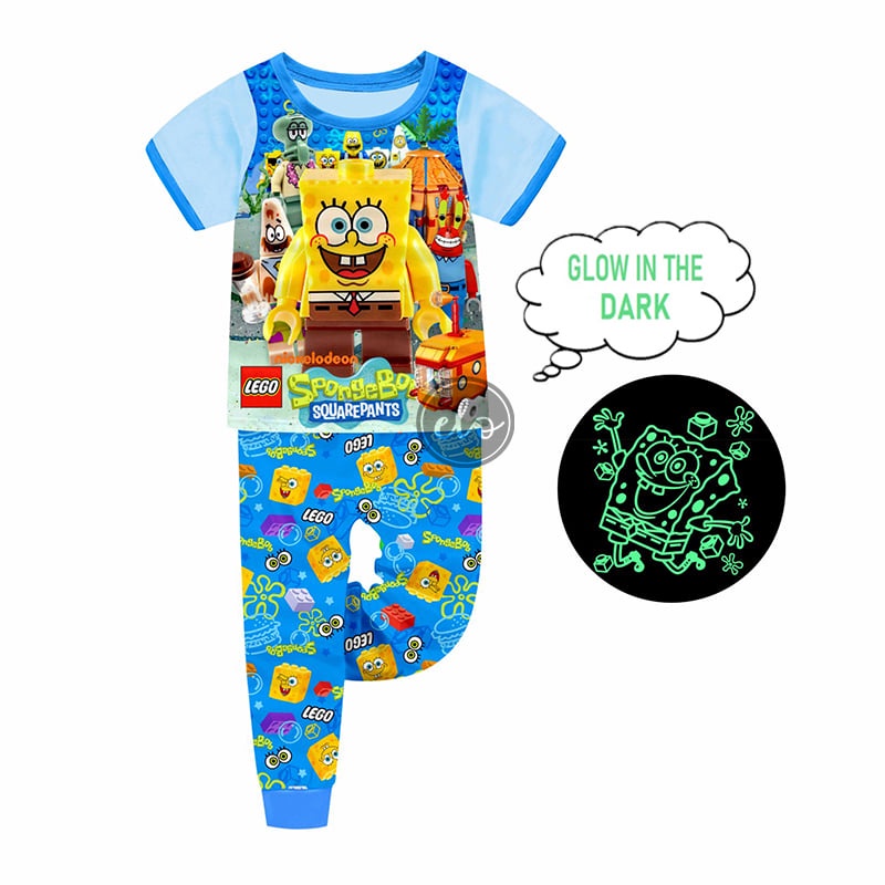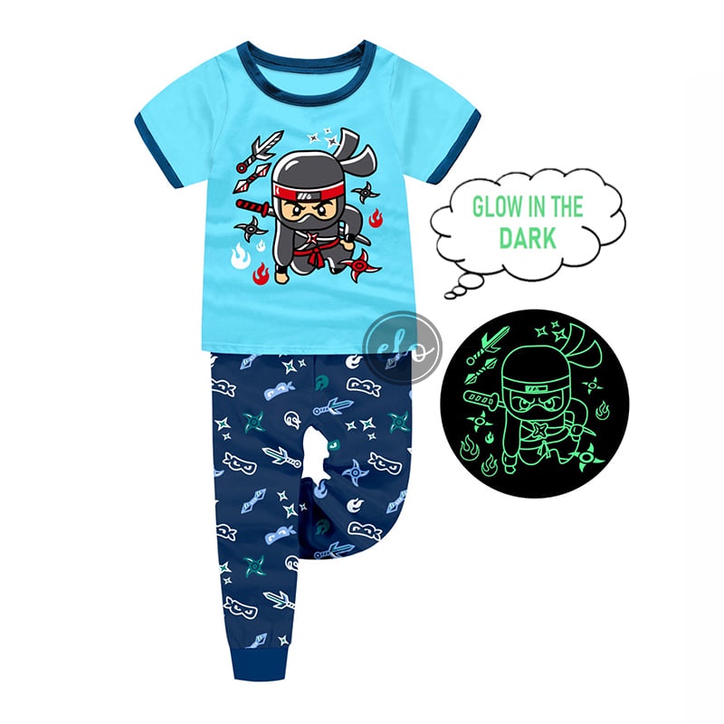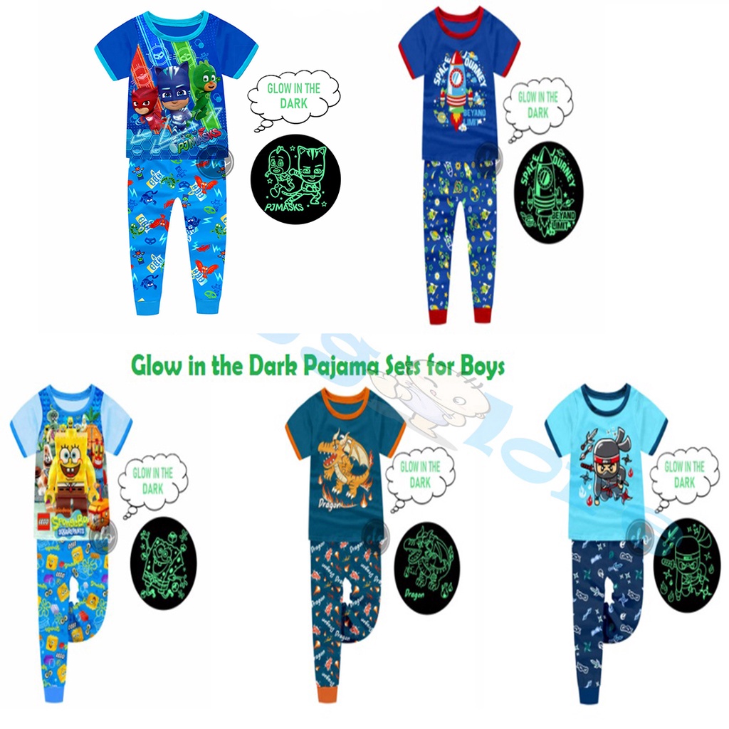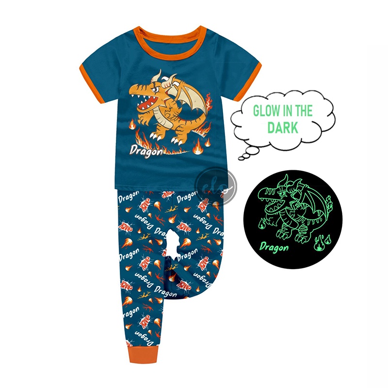 GLOW in the DARK Pajama Set Dragon Spongebob Ninja Sonic Shortsleeves Pajamas Set for Boys