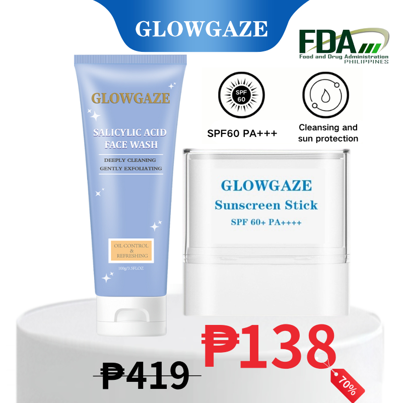 GLOWGAZE First Class Kit Mattifying Sunscreen Stick Super LIghtweight Anti Acne Facial cleanser 100g