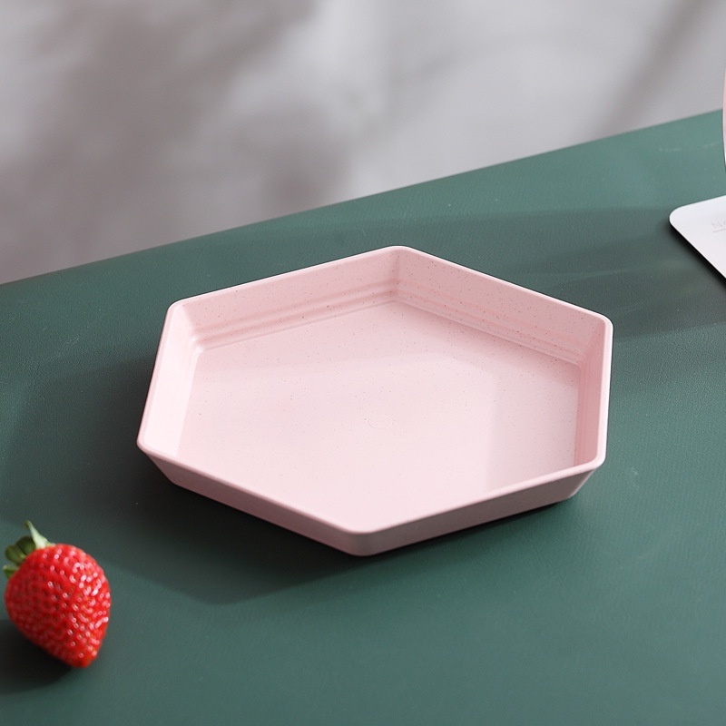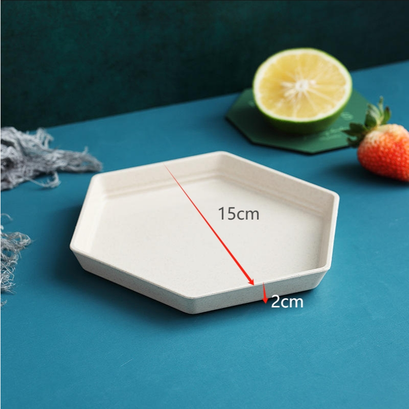 GMINI 6/12pcs Hexagon Dessert Snacks Plates (15cm) Wheat Straw Dessert Plate Food Plastic Tray