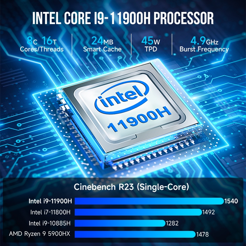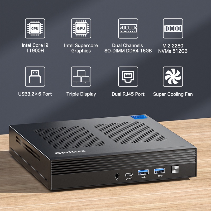 GMKtec M4 Mini PC I9-11900H DDR4 32GB 1TB M.2 2280 PCIE4 SSD Window11 Pro BT5.2/WiFi6 Gaming Computer Server PC Mini Pc