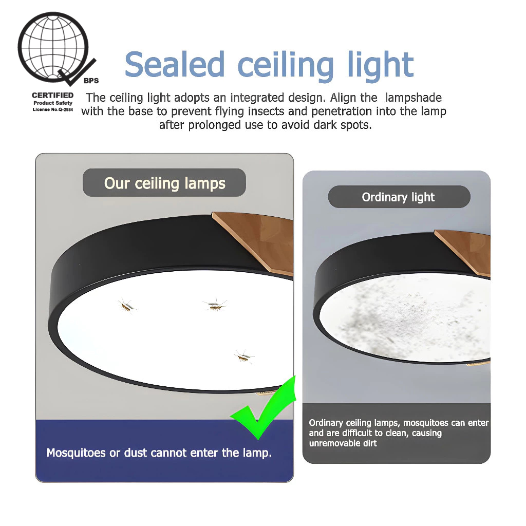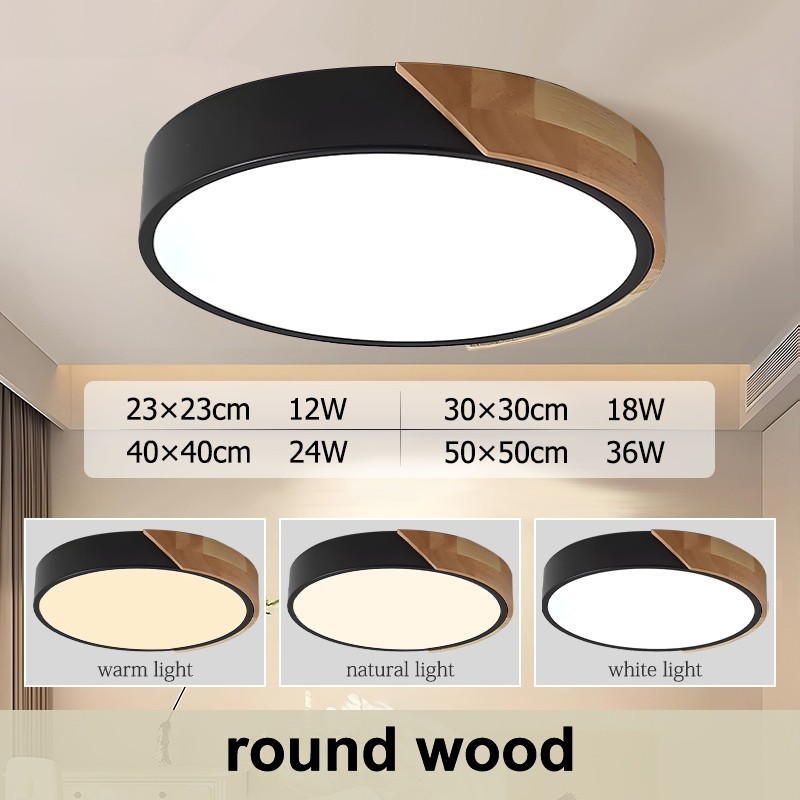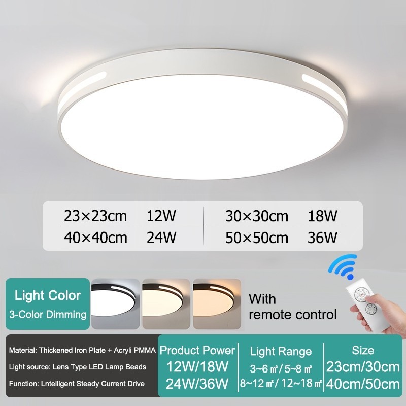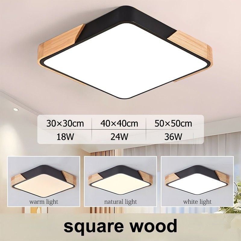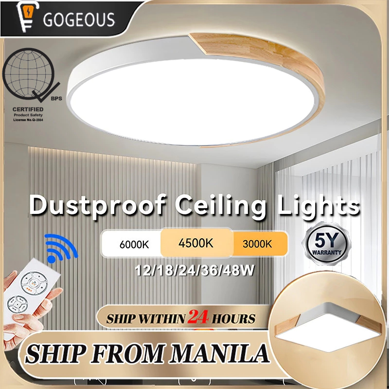 GOGEOUS Ceiling Light With Remote Modern Design Tricolor Dimmable Led Ceiling Lights Wood Fixture Ultra-Thin Ceiling Lamp For Living Room Dining Bedroom Corridor Home Hotel