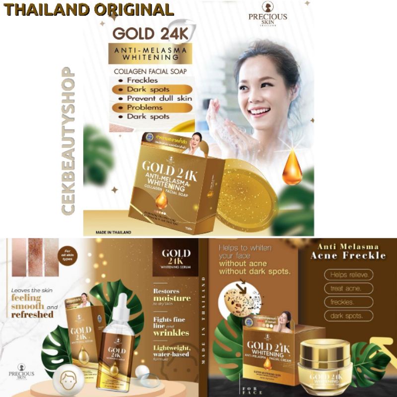 GOLD 24K WHITENING ANTI MELASMA FACIAL CREAM, COLLAGEN FACIAL SOAP, WHITENING SERUM BY PRECIOUS SKIN