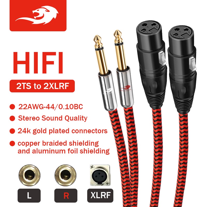 GOLLEY LION Hi-Fi Xlr Splitter Audio Cable Regular 3 Pin Dual Xlr Female To Dual 6.35mm 1/4? Jack For Mixer Amplifier