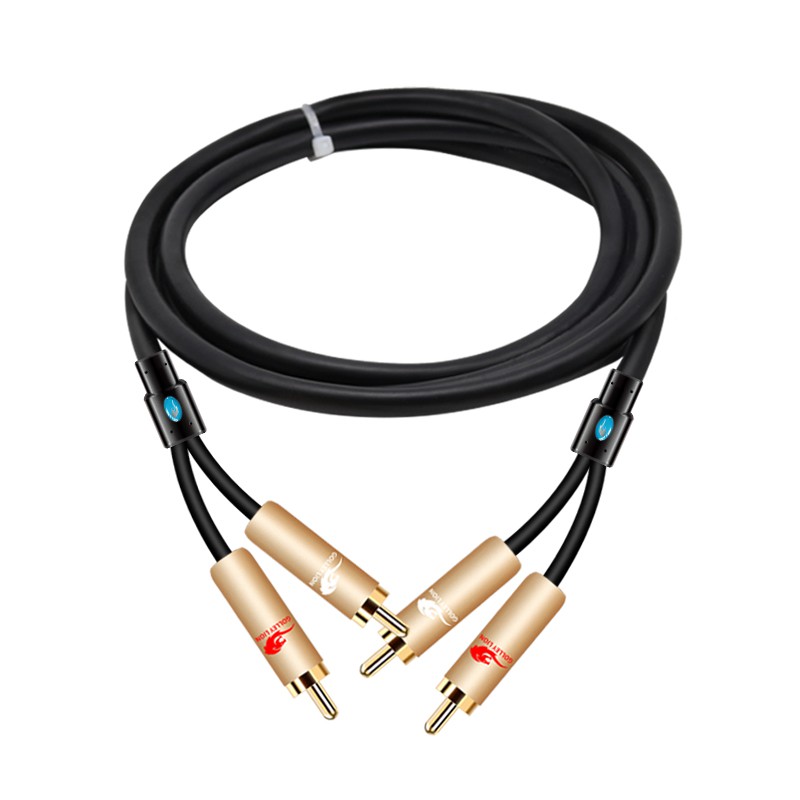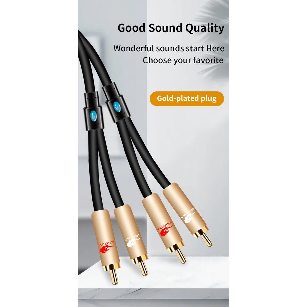 GOLLEY LION Rca Stereo Cable Cord Dual Male To 2 Audio For Digital Analog Double Shielded Subwoofer Amplifier Av Receiver Hi-Fi Black Pvc