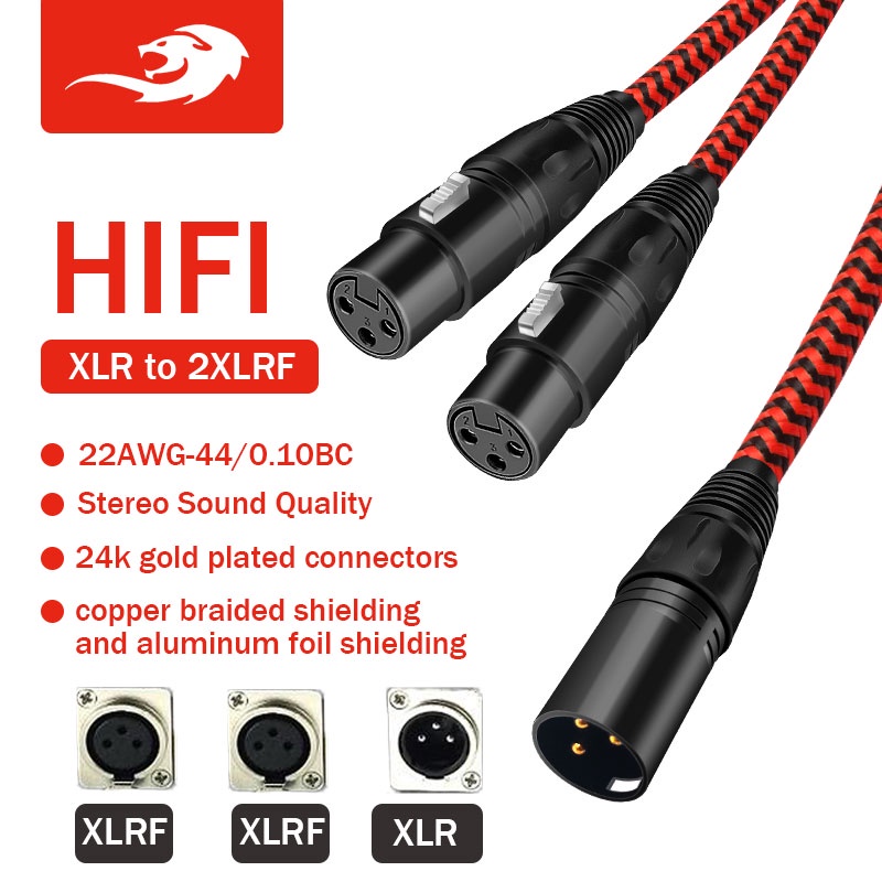 GOLLEY LION XLR Male to Dual XLR Female Audio Cable for Mixer Amplifier Microphone Red
