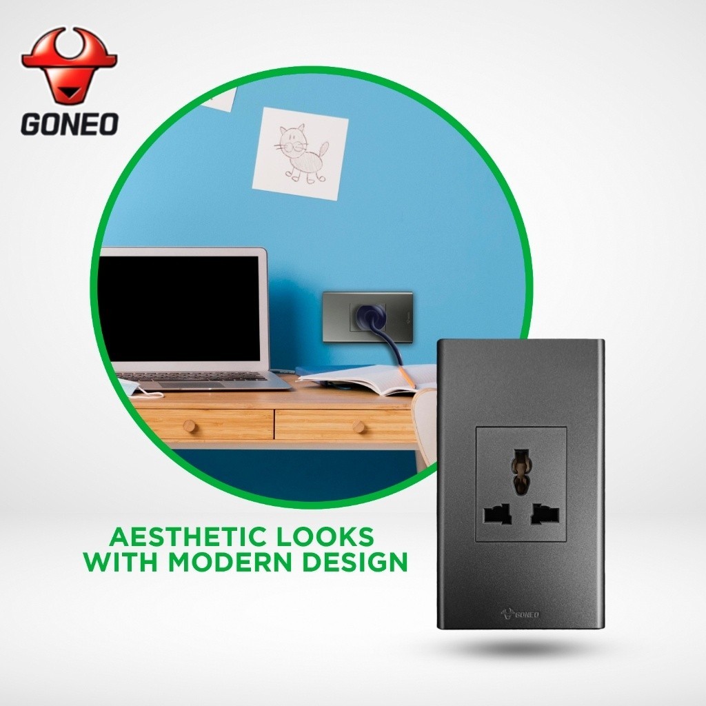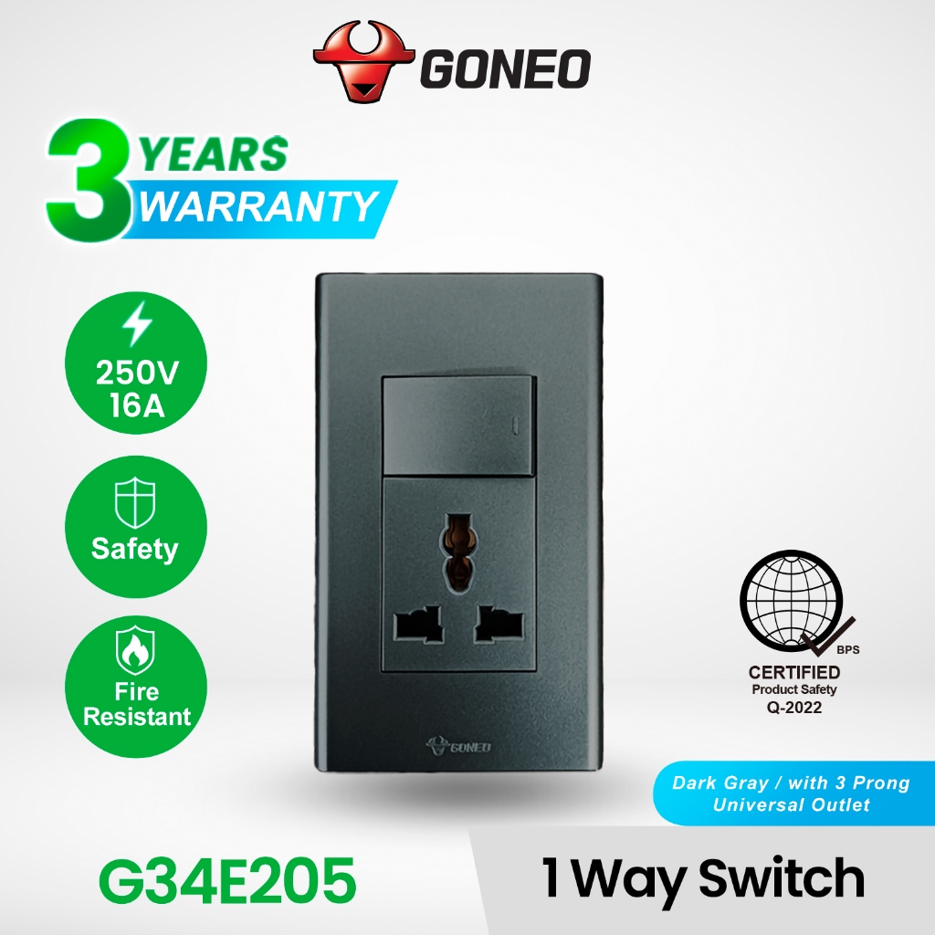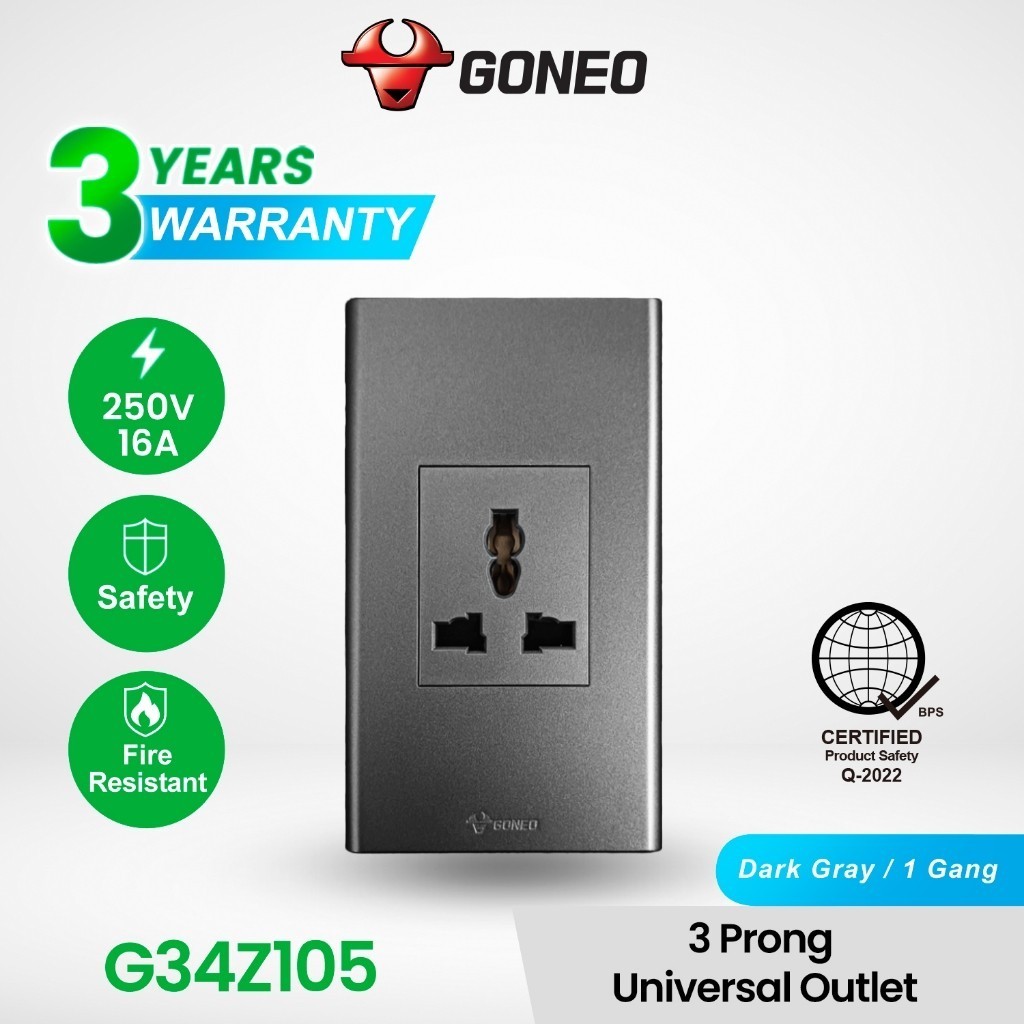 GONEO 3 Prong Universal Outlet 16A with Childproof Safety Shutter G34Z105