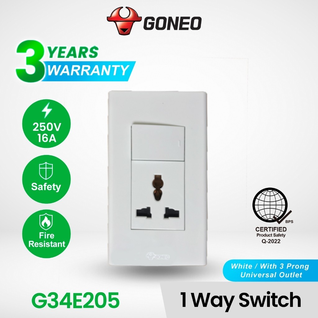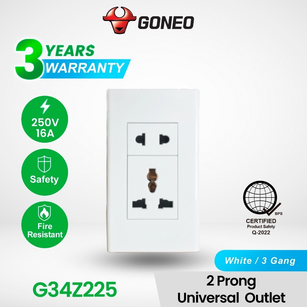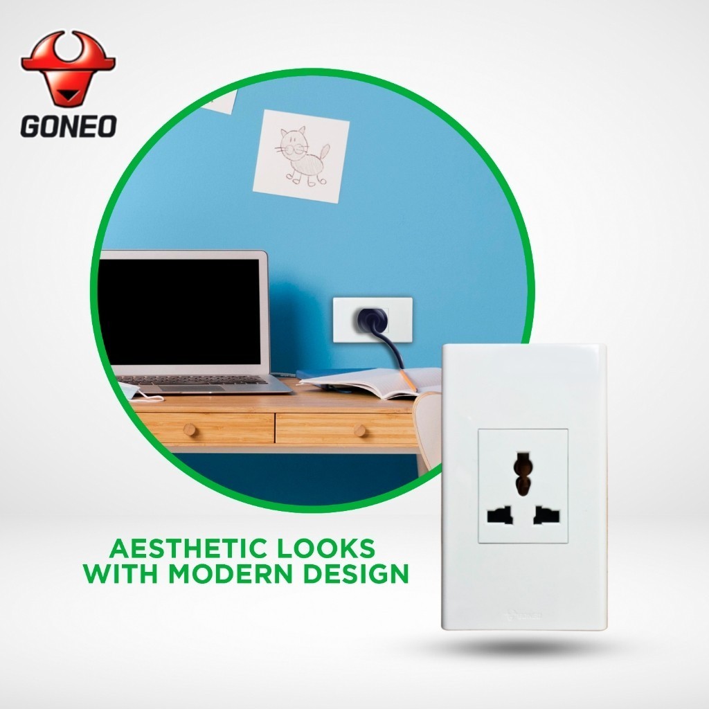 GONEO 3 Prong Universal Outlet 16A with Childproof Safety Shutter G34Z105