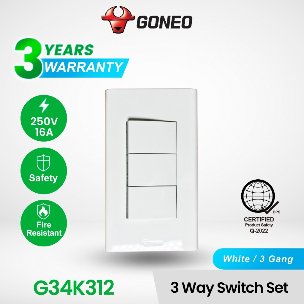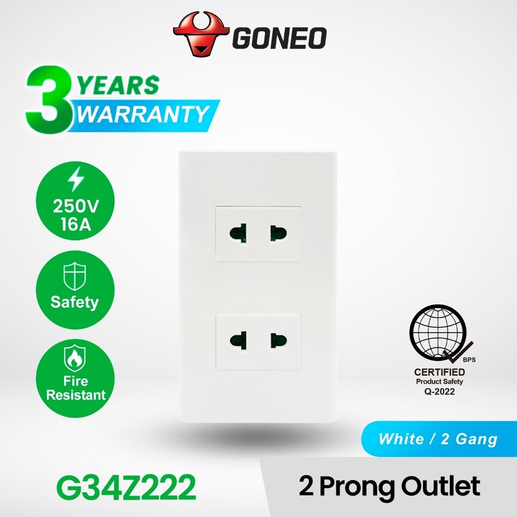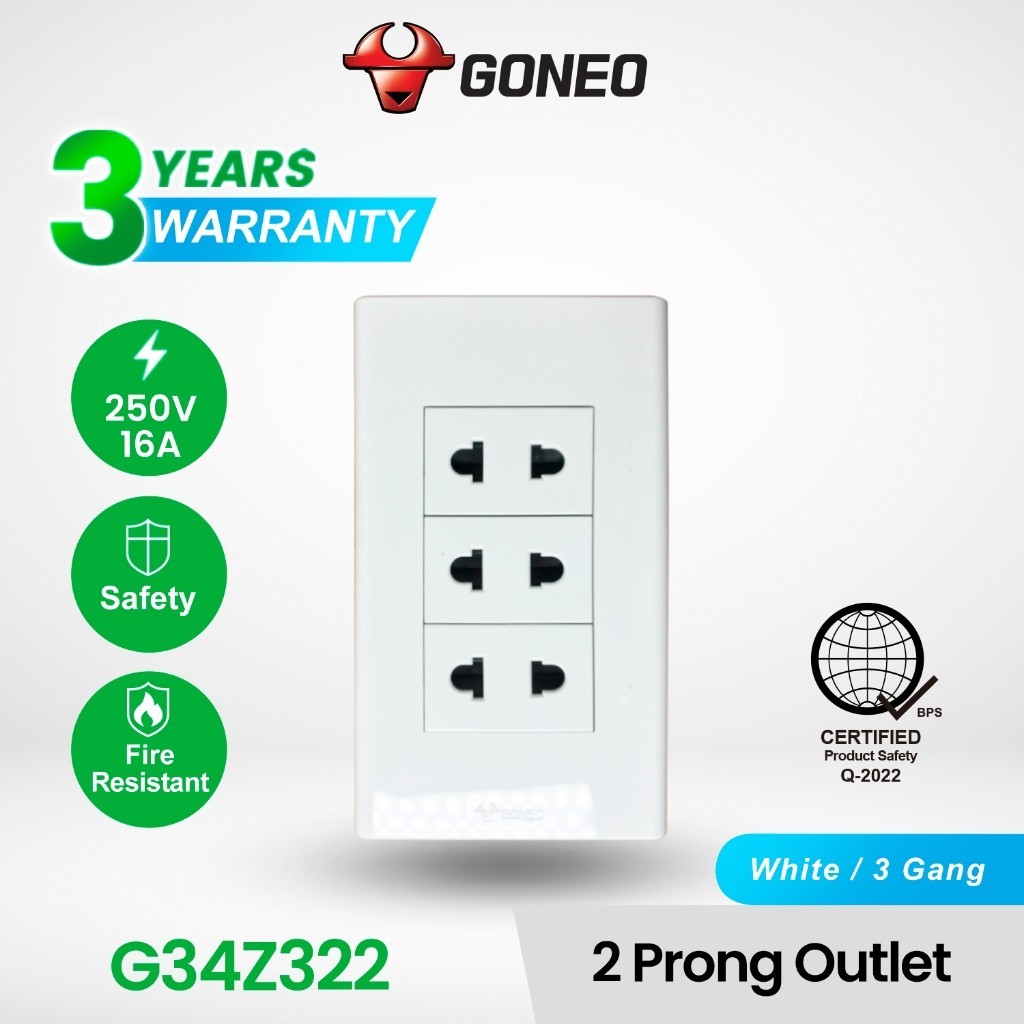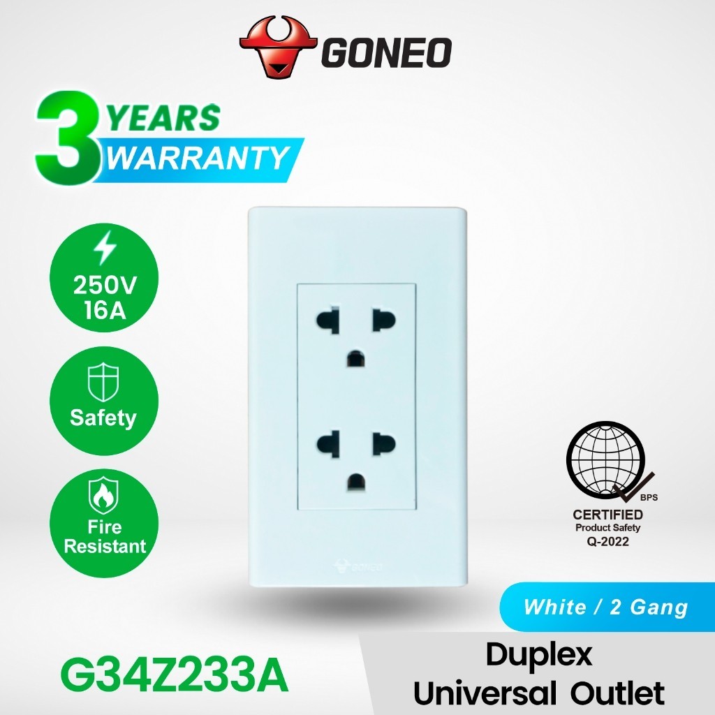 GONEO 3 Prong Universal Outlet 16A with Childproof Safety Shutter G34Z105
