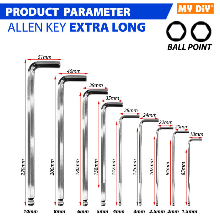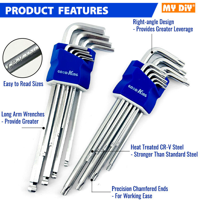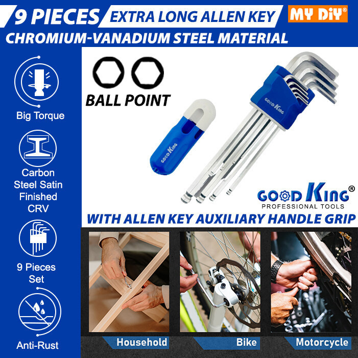 GOOD KING 9pcs Allen Key Set Allen Key Ball Point Allen key Torx Star Allen Key CR-V Kunci Allen Key
